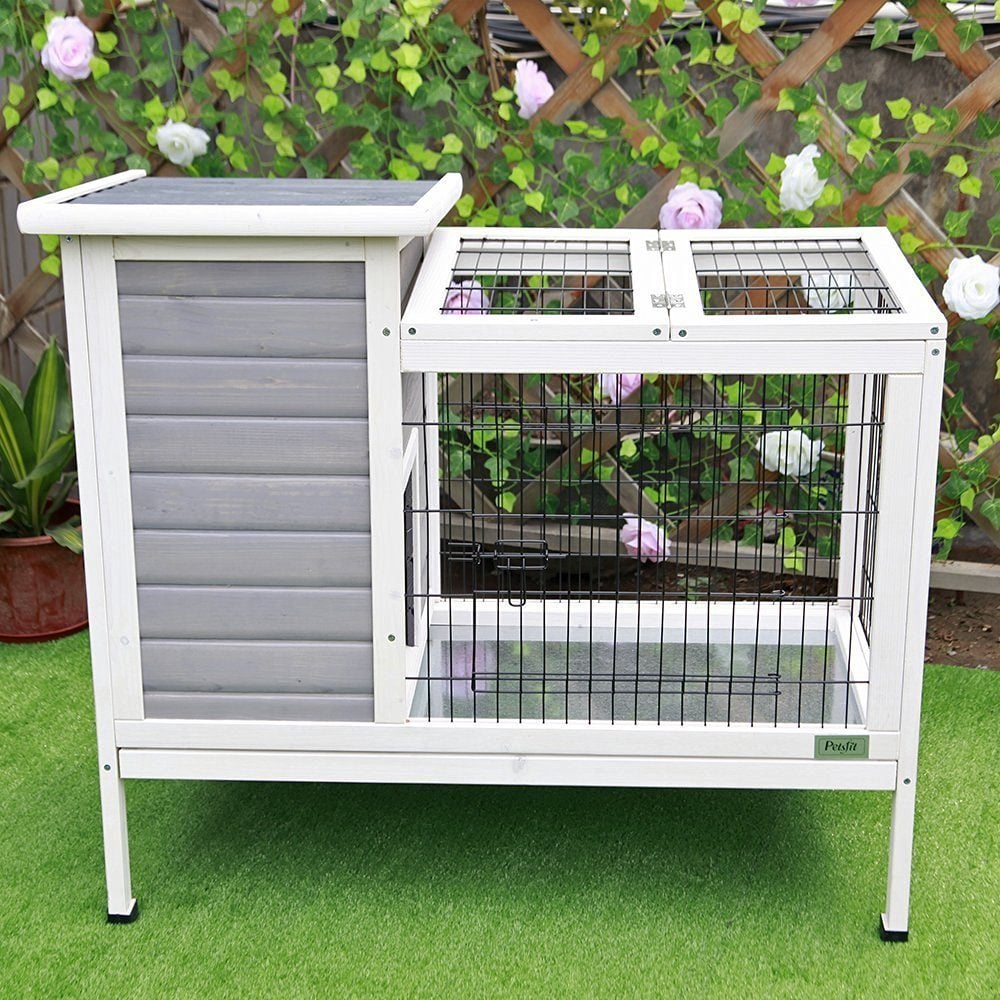 This small chicken coop sets next to a greenhouse and I cut a hole through the greenhouse wall (see that cut section in the above picture) which leads to a rabbit hutch you see in the first couple pictures. I also use fake foliage in the hutch so the birds have privacy and feel secure.