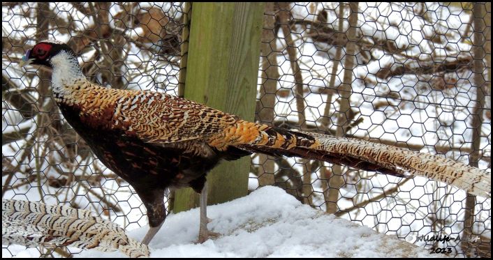 Thought it was time to update the hybrid category. All of these are still coloring-out...they're only about 1/2 way in. There are 9 different pheasant breeds represented here. Some are 3 different breeds, some are 4. The blinders on some are necessary for their protection since they are very aggressive towards each other. None of these birds will EVER be available for sale for anyone's breeding purposes. Enjoy!