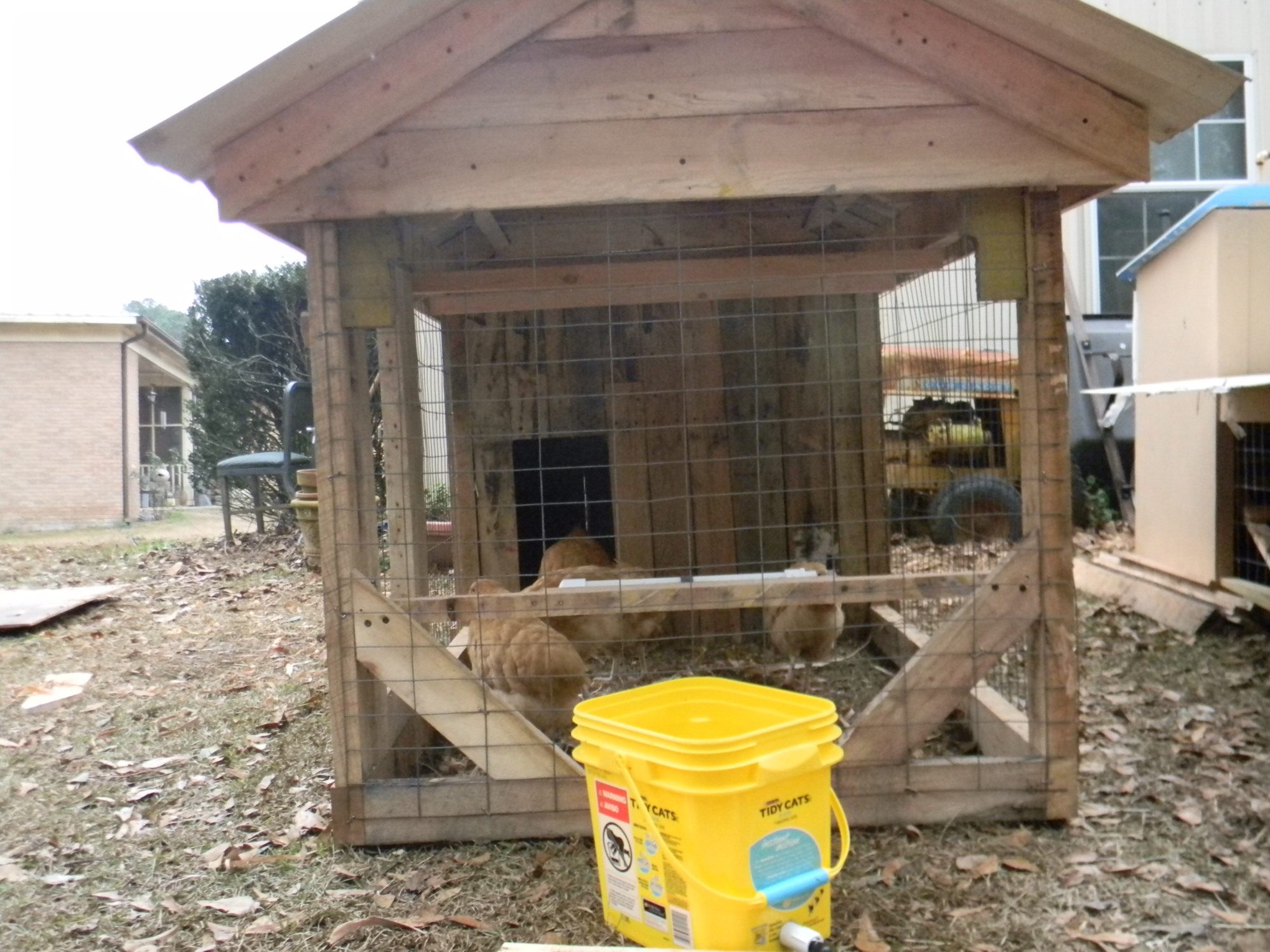 Finished the tube feeder tonight and will get the water bucket hung tomorrow...very satisfied with this one, more so since the 1st one we build 2 months ago which is 4'x12' was about $250.00 in materials.
