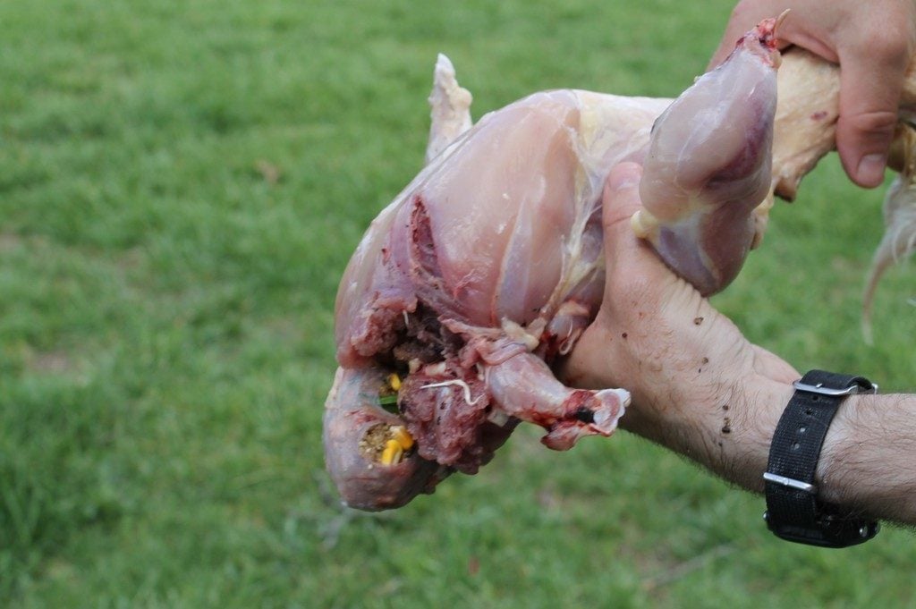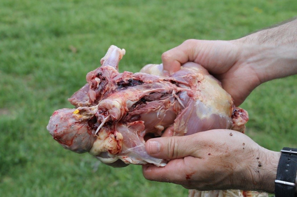 On the positive side, I was able to salvage 60% or more of the meat. Good leg quarters, one breast, one partial breast.