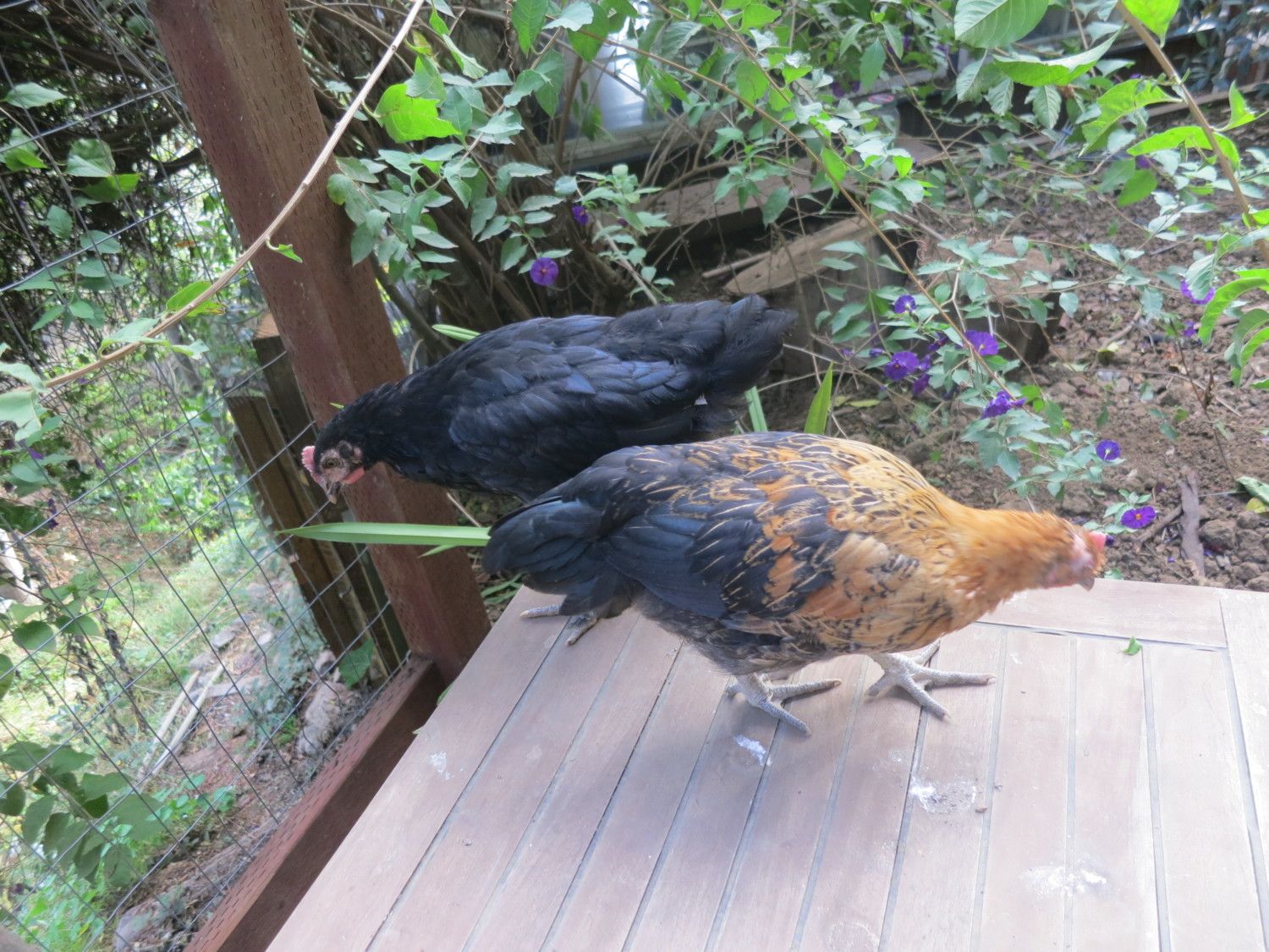 Either that, or wait until I know who I might be keeping. If both are roosters, then I only have to integrate Tina.