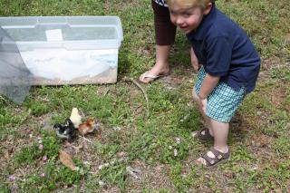 Our Chihuahua, Mira, was hysterical - she decided she was their mama hen and herded the girls all over the yard.
