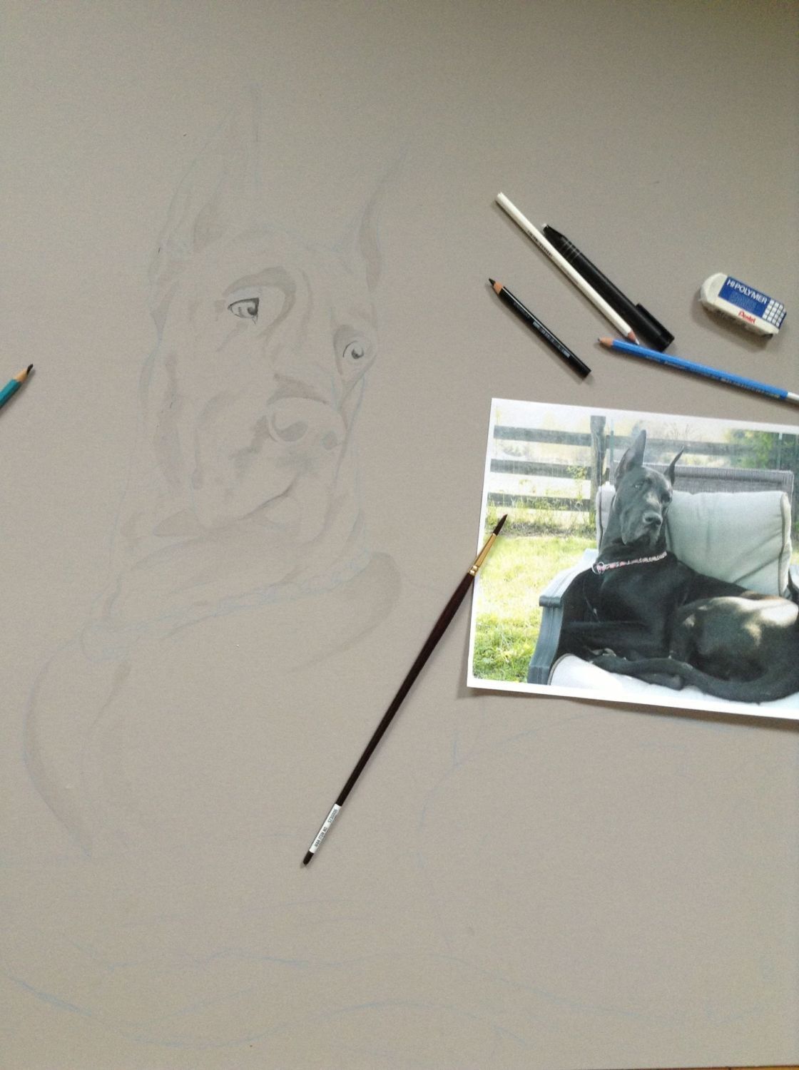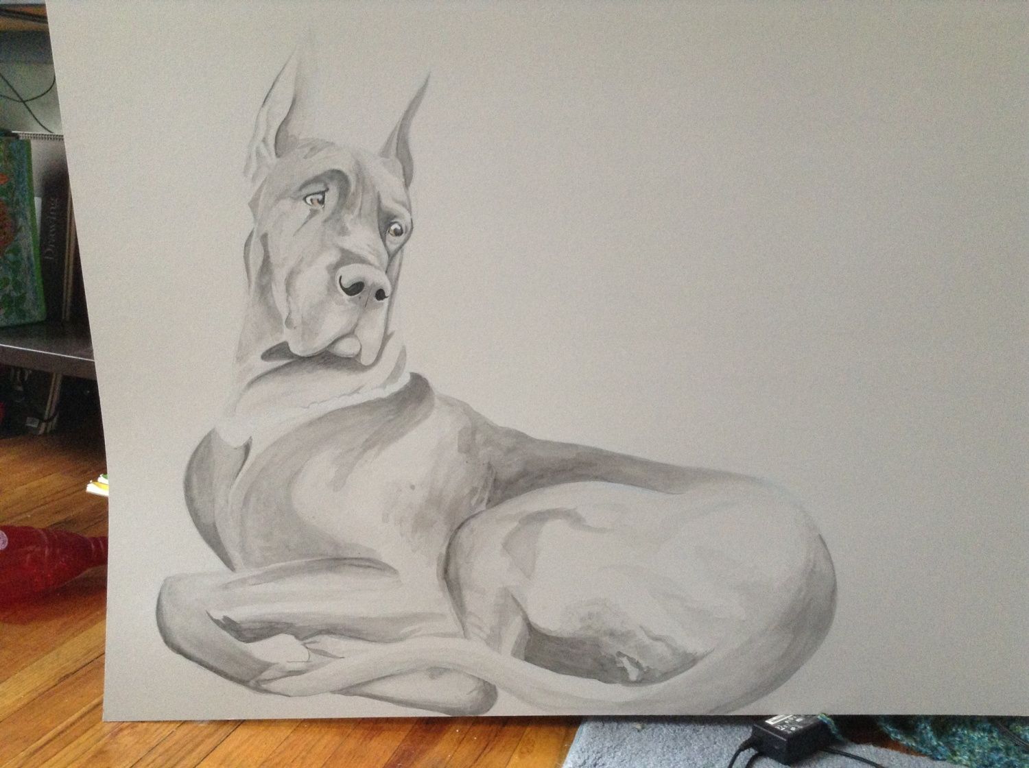 . She is getting a free be and was able to sleep on the nice new couch. The other dogs were so jealous! Here is an update on the painting. I was worried I had messed it up because the second black I started to use on the face had blue in it. You'd think black would be the one color in the art world that is the same?? Ill be sure to update the progress on Monchou and the painting soon