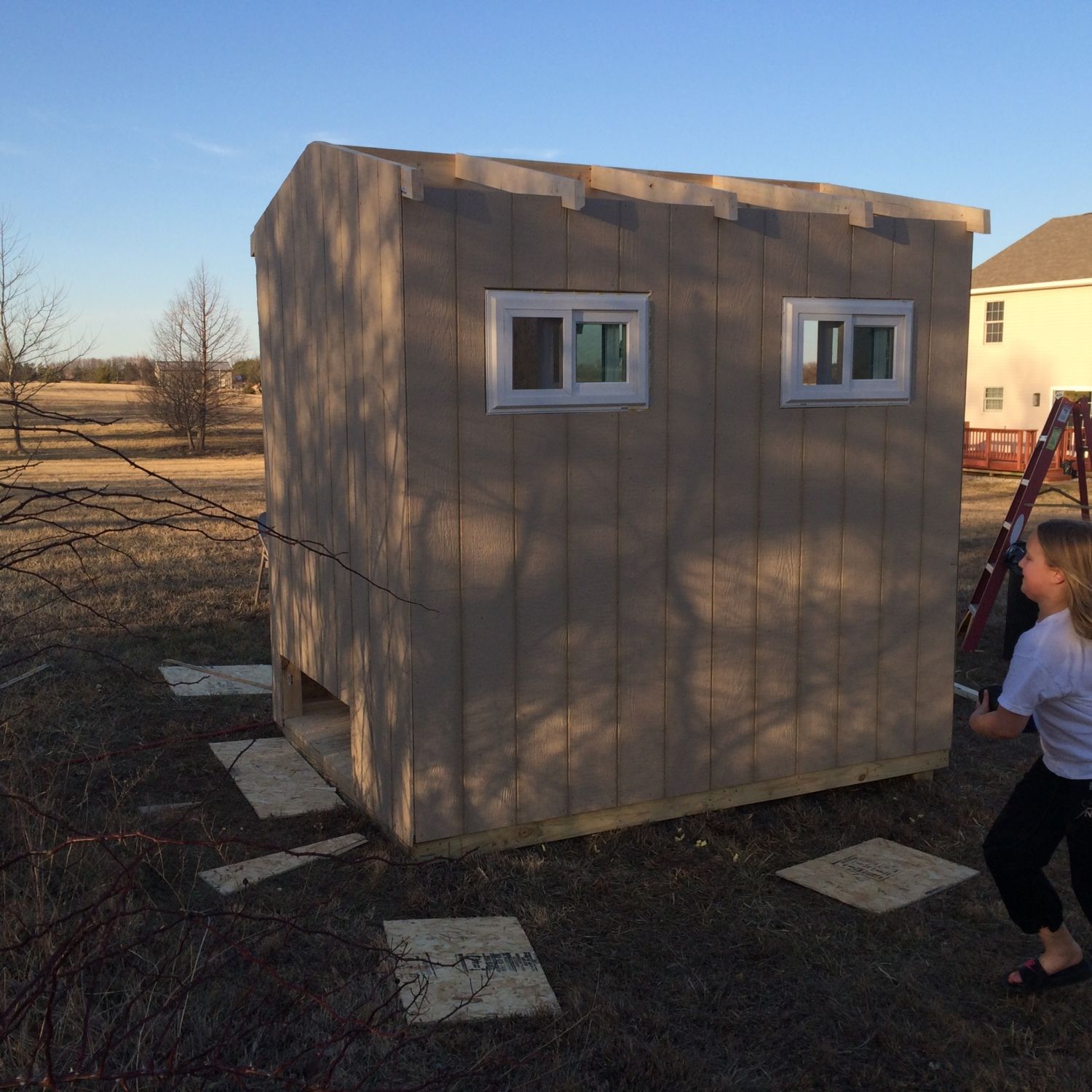 I still need to put the metal roof on, frame and build the doors, build external nest boxed to go off the back, and frame the corners and along the rafters. I am just going to put chicken wire under the overhangs instead of soffit for ventilation.