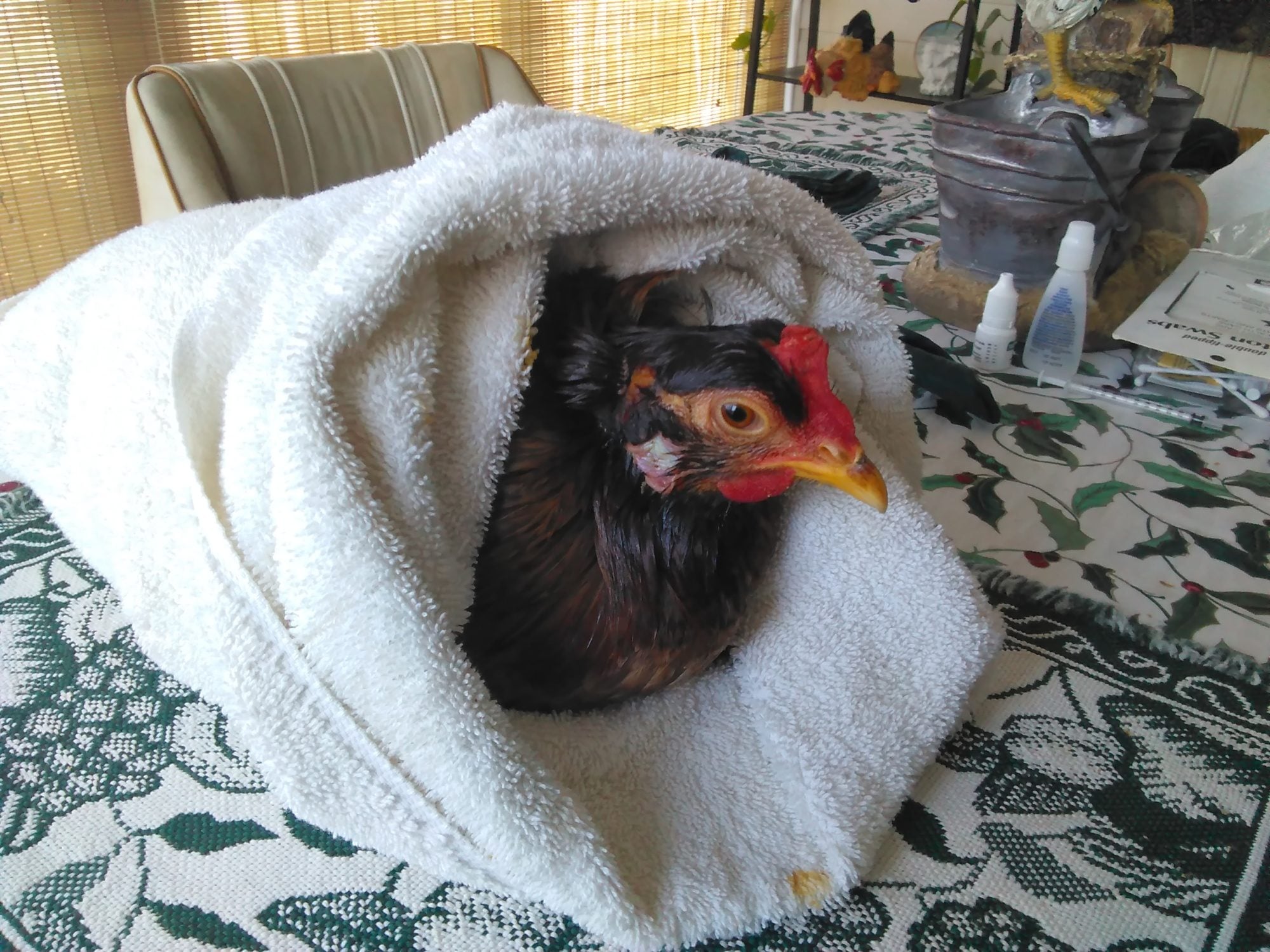 Hello, Yesterday one of my hens was attacked by a hawk but was saved before the hawk could give a death blow. Below is a picture of the wound she has on the neck and I wanted to find out if anyone can help with treatment.