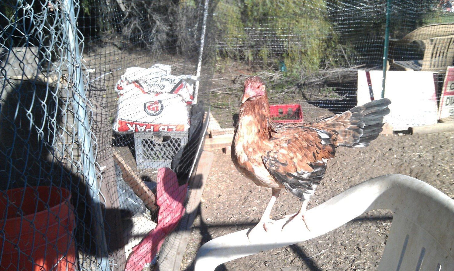 A few days ago my next door neighbor told me that one of my chickens had gotten loose and came into his yard. It was starting to get dark at the time, about 5:00 pm. He said that he would give it back in the morning after he'd caught it. Well, morning came and true to his word he handed me a “Cat Carrier” with what looked like one of my Easter Eggers in it. I quickly put it in the pen with the rest of my birds, and hurried to return his carrier.