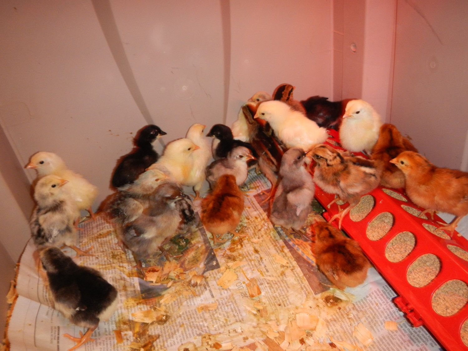 I have what looks like mostly the same chicks (also rainbow layer collection from Murray McMurray) mine are three weeks old now :-)