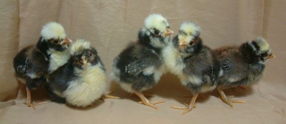 New chickies. This second batch is all from the Tolbunt projects running here but as obviously seen in this little "sample" there's a lot of culls. Every single one of these chicks is a cull, although I might keep the mottled one to see how it grows to look. (second from left) By cull I mean sold.