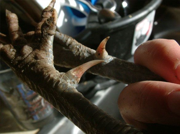 It's a good thing they're good girls though. Upon actually grabbing them they're very calm and understanding. Only one of my hens isn't, but thankfully she never perches in the trees at night, and she just also so happens to have spurs like these -