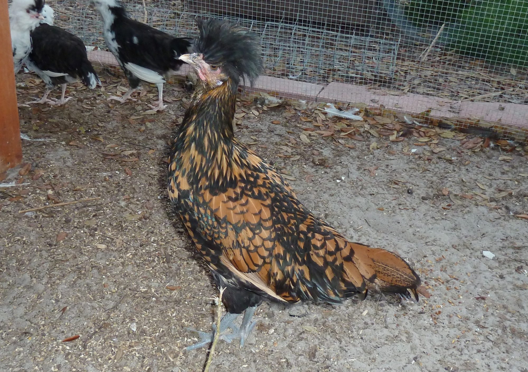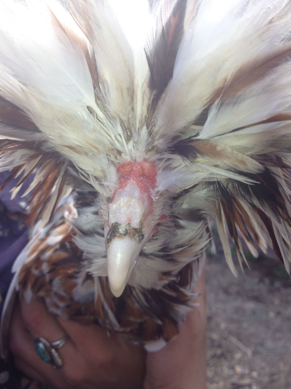 I had a buff laced with spurs like that. She was a lover so she never used them, thankfully! Boy, Polish sure do love to roost in the trees. Two different days our gate didn't latch and when I went out to lock the coop I was missing a couple. Luckily, they talk to me so I found them in the olive trees, just within reach!