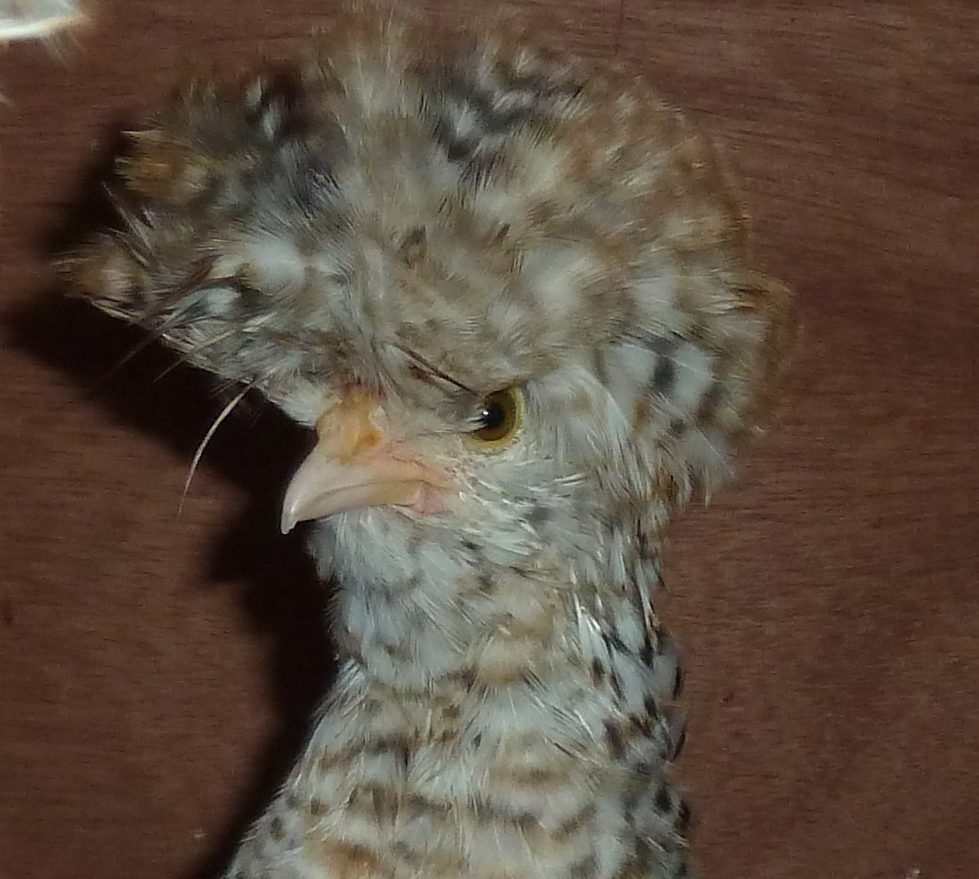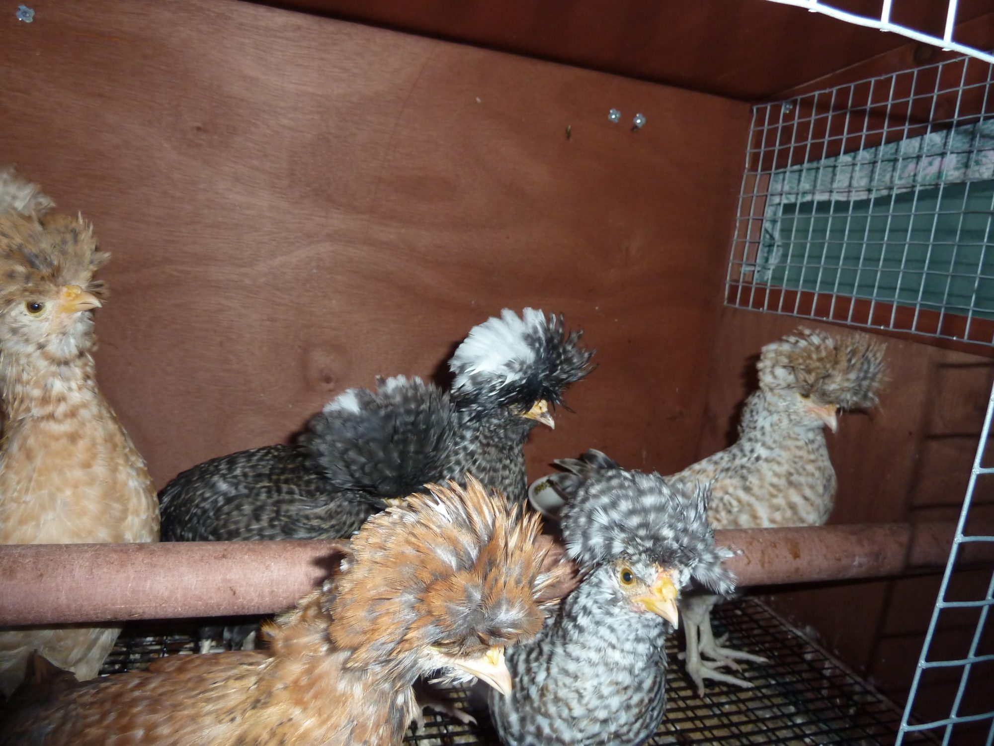 My one Tolbunt roo, who has been alone the last few months, finally moved in with a flock of girls, only 3 are Polish, 5 others are bigger chickens. One of them has been chasing him around pecking him, LOL. You have to laugh when the hens bully the roo around for awhile.