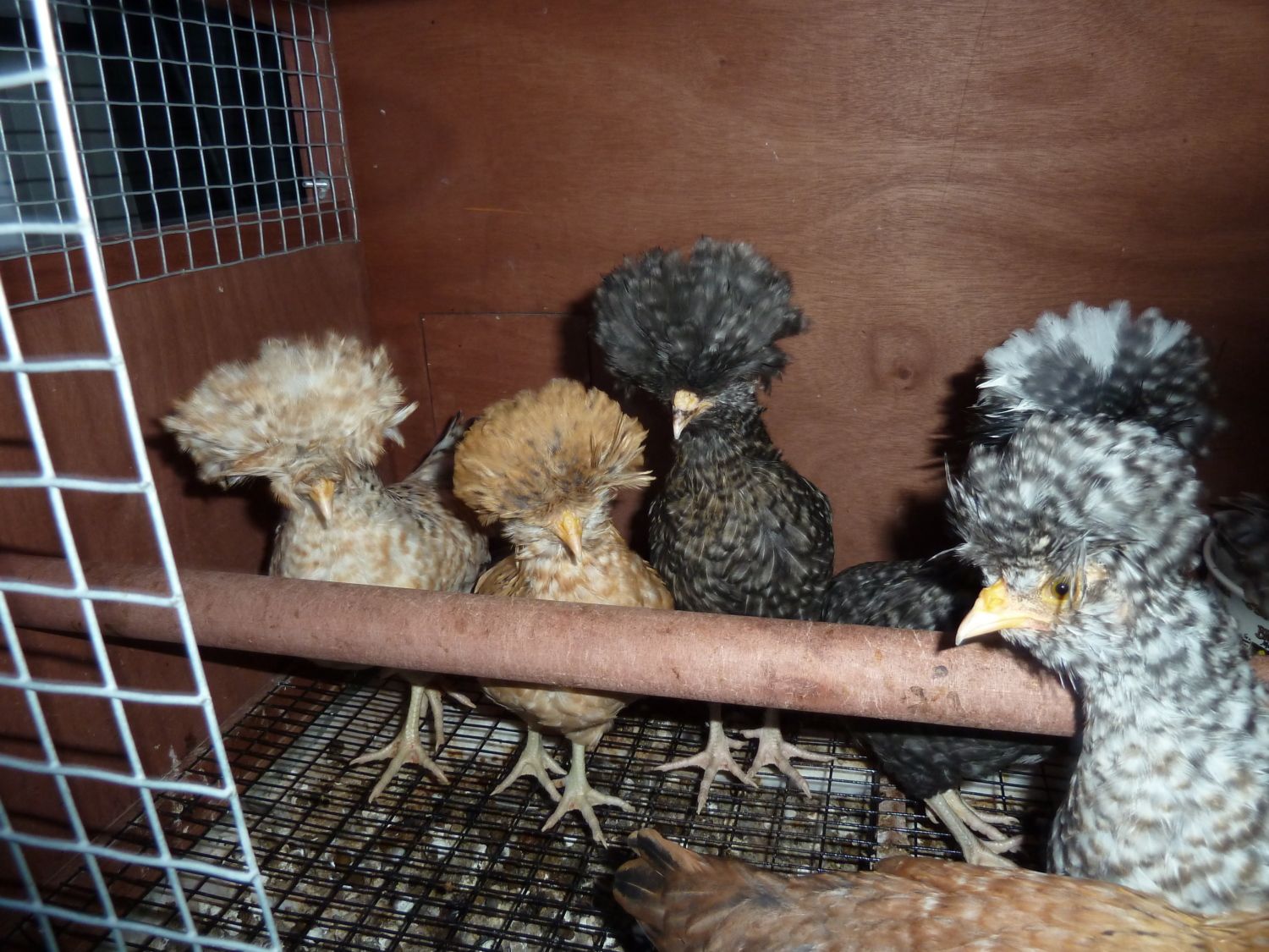 I have 5 creles in the house, they are 3 weeks old, very tame, and cute, and I'm guessing at least 2 males. I'm keeping any roos, so I'll have to build a roo palace, LOL