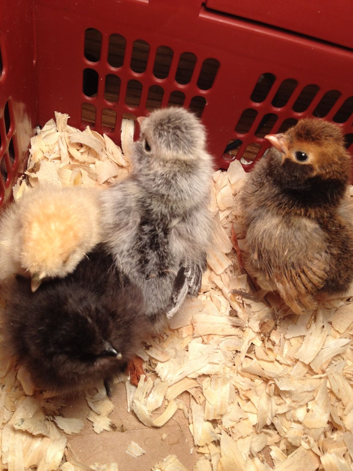 Hi all...I'm a new polish mommy! I just couldn't resist! Here are a couple pic of new babies with some silkie babies I also got. I was told one is a golded laced and one is a silver laced. Just had to share