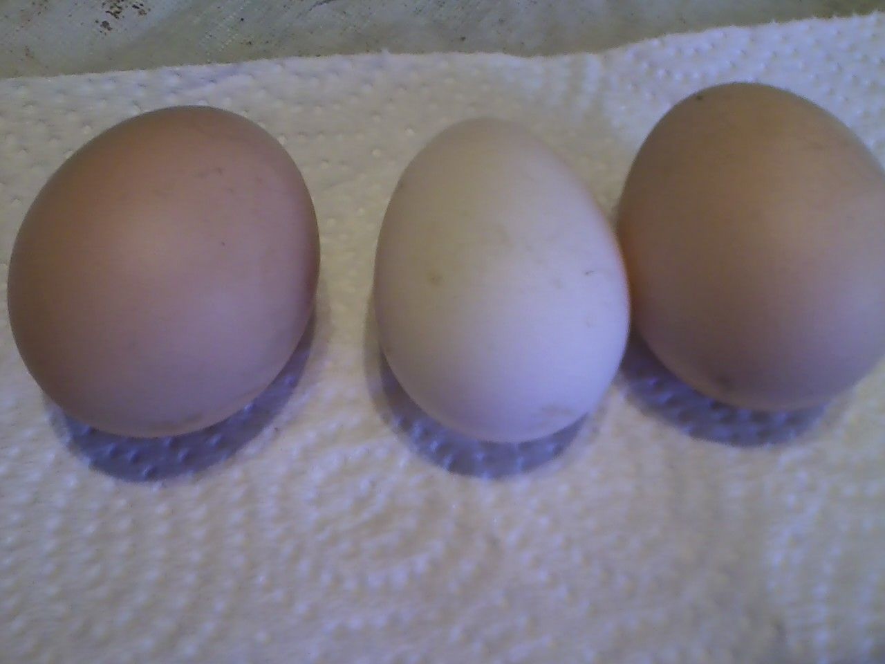 The egg in the middle is the one I think is Einstein's. My silkie lays a tiny egg compared to this egg. I was expecting Einstein's egg to be small like the silkie egg. Poor little Einstein.