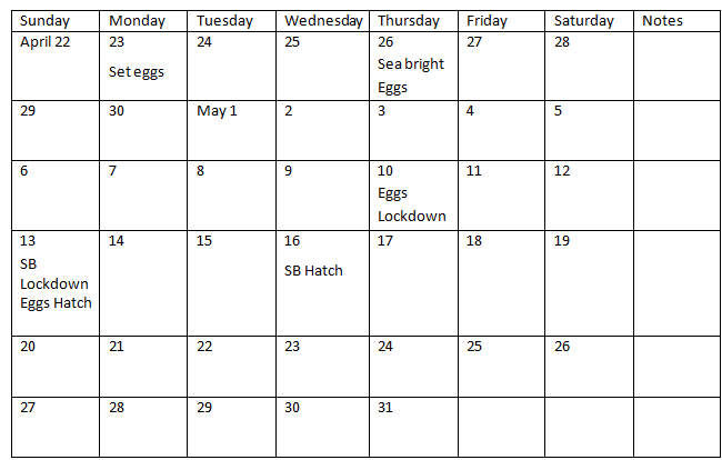 Instead of eggs going on lockdown on the 10th i put them in on the 12th... the day before they were suppost to hatch. did this mess everything up? and if i pu the SB (sea bright) eggs in today in lock down with the other eggs will that mess everything up tp becaause you cant open it... ahhhhh i have 2 incubators. 1 has lock down eggs and 1 has eggs not in lockdown. the one that isnt in lockdown has SB eggs and quail eggs. thats why i needed 2... i set the quail eggs on may 4th. Bob whites hatch in 23 to 24 days. i think i really messed up.