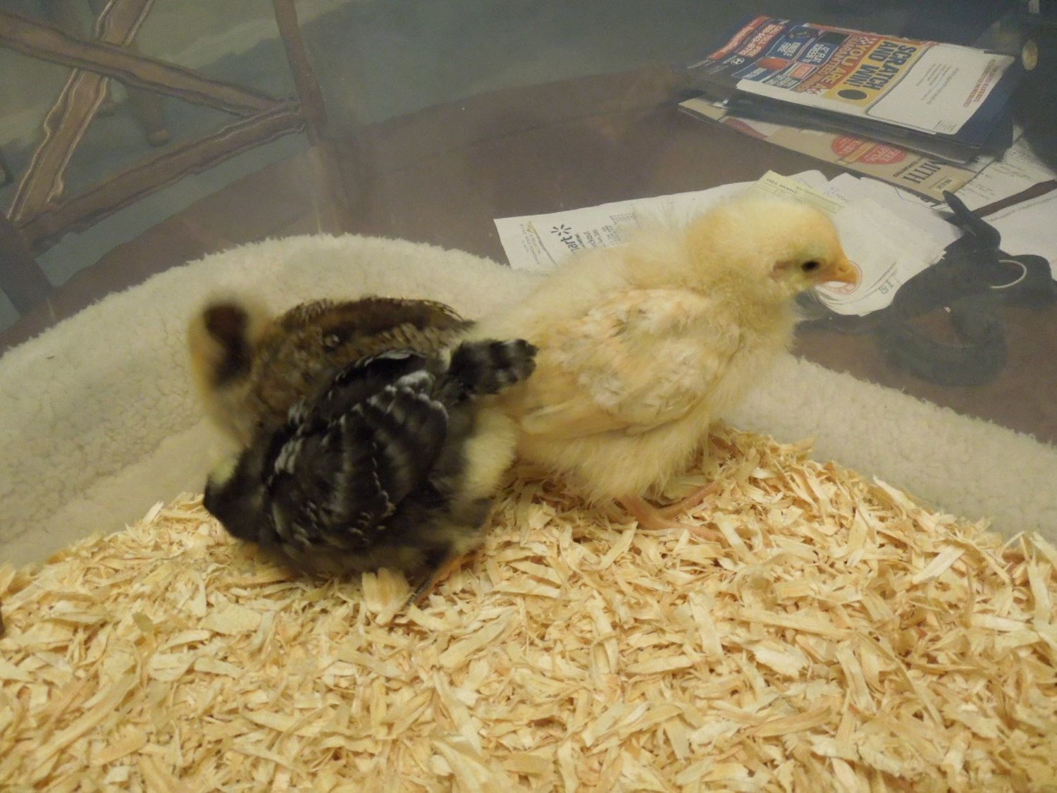 Hello to all! I have seven 13 day old chicks(some pics below.) 2 Buff Orpingtons, 2 Plymouth Barred Rocks and 3 "Aracaunas" really Easter Eggers. These little ladies are growing like weeds and look so healthy. I'm ecstatic!! But I built one of those rubbermaid tub brooders with a heat lamp and a dimmer switch which has served us well. I can see though that they are swiftly outgrowing it. I have plans to build a bigger brooder to get them from there to the coop outside eventually. I need advice on what type to build (simple please) and how big to accommodate them. TIA for any help and pics.