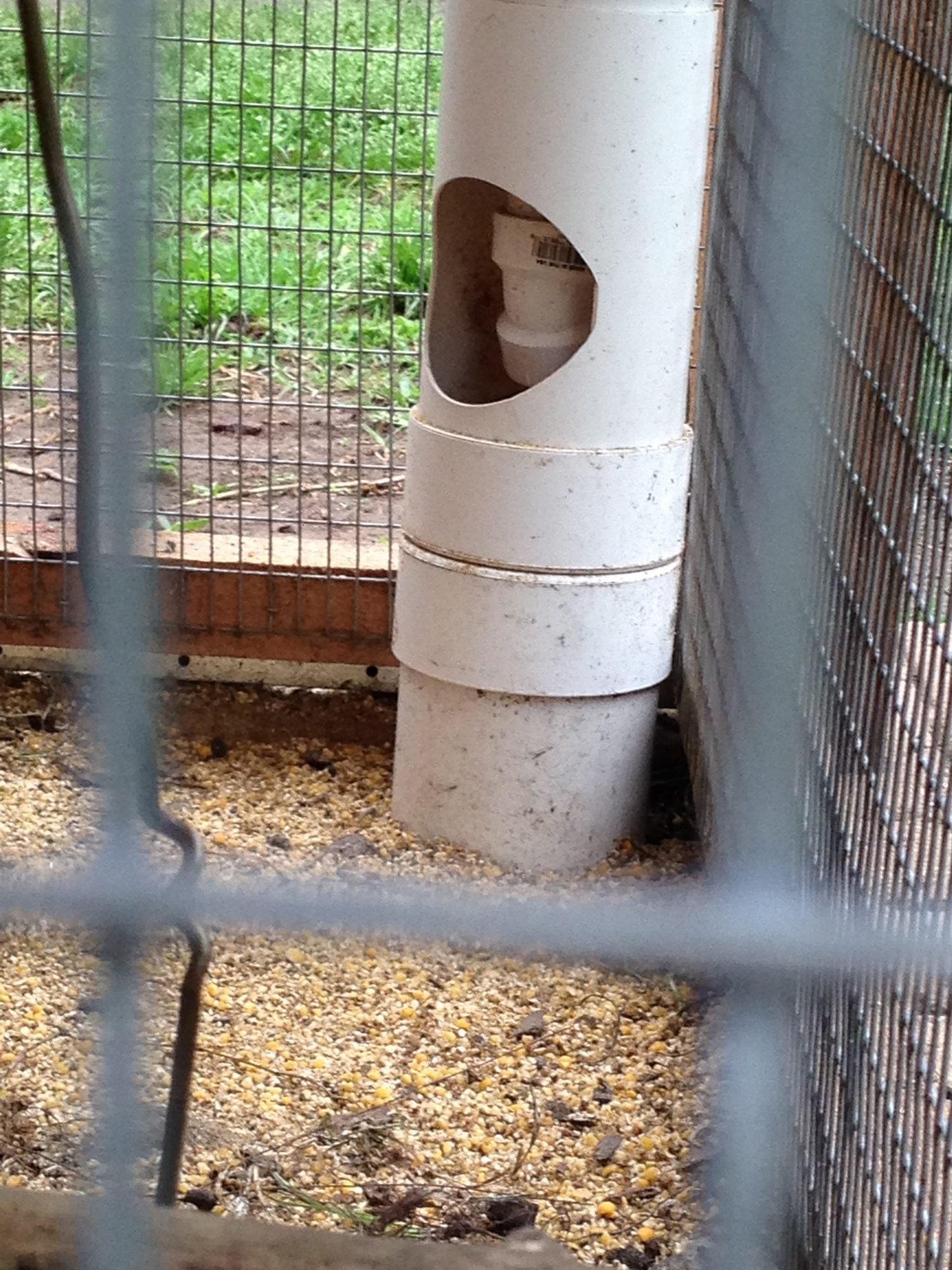 Another trick is not so much wire mesh but bars across there so the chicken cannot swing its head sideways. That stops the billing out. The head needs to be able to fit between the bars. The spacing for the bars will probably change as they grow.