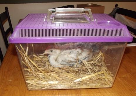 When she landed on the ground, she walked over to the door and wanted out. I opened the door and she went out into the run, followed by all four chicks. They did their normal stuff, but the hen also kept going to the pop door. I thought she wanted to take the chicks in there, so I opened it up again. She walked in, and flew up on the roost.