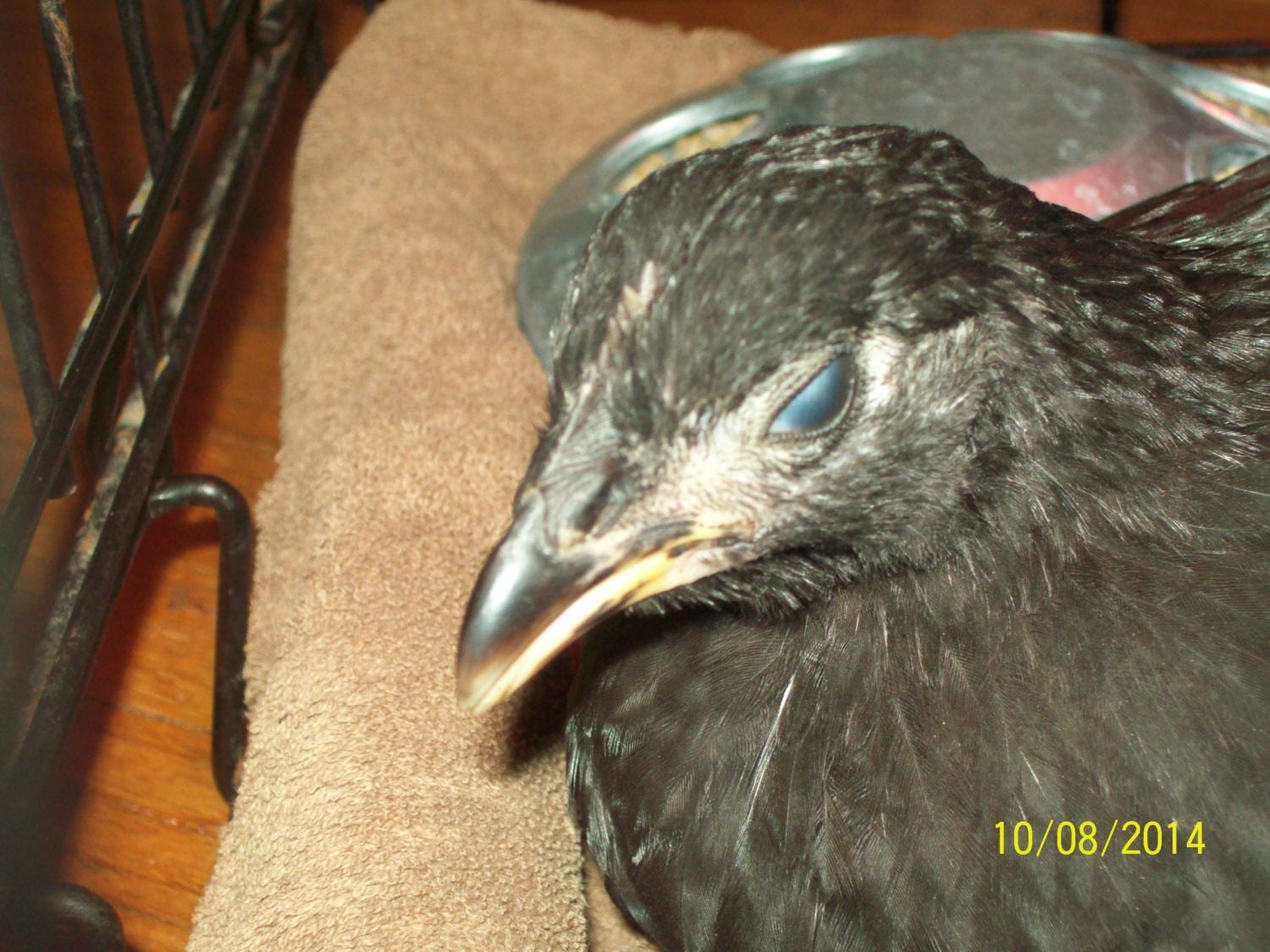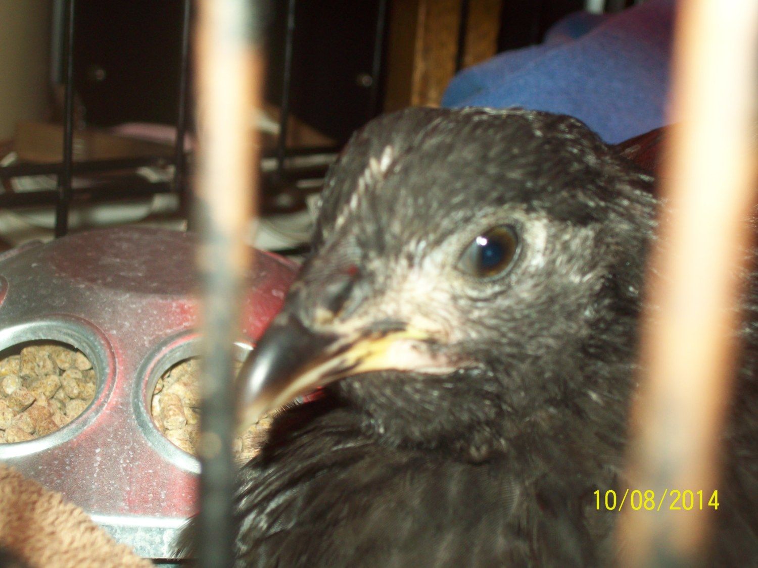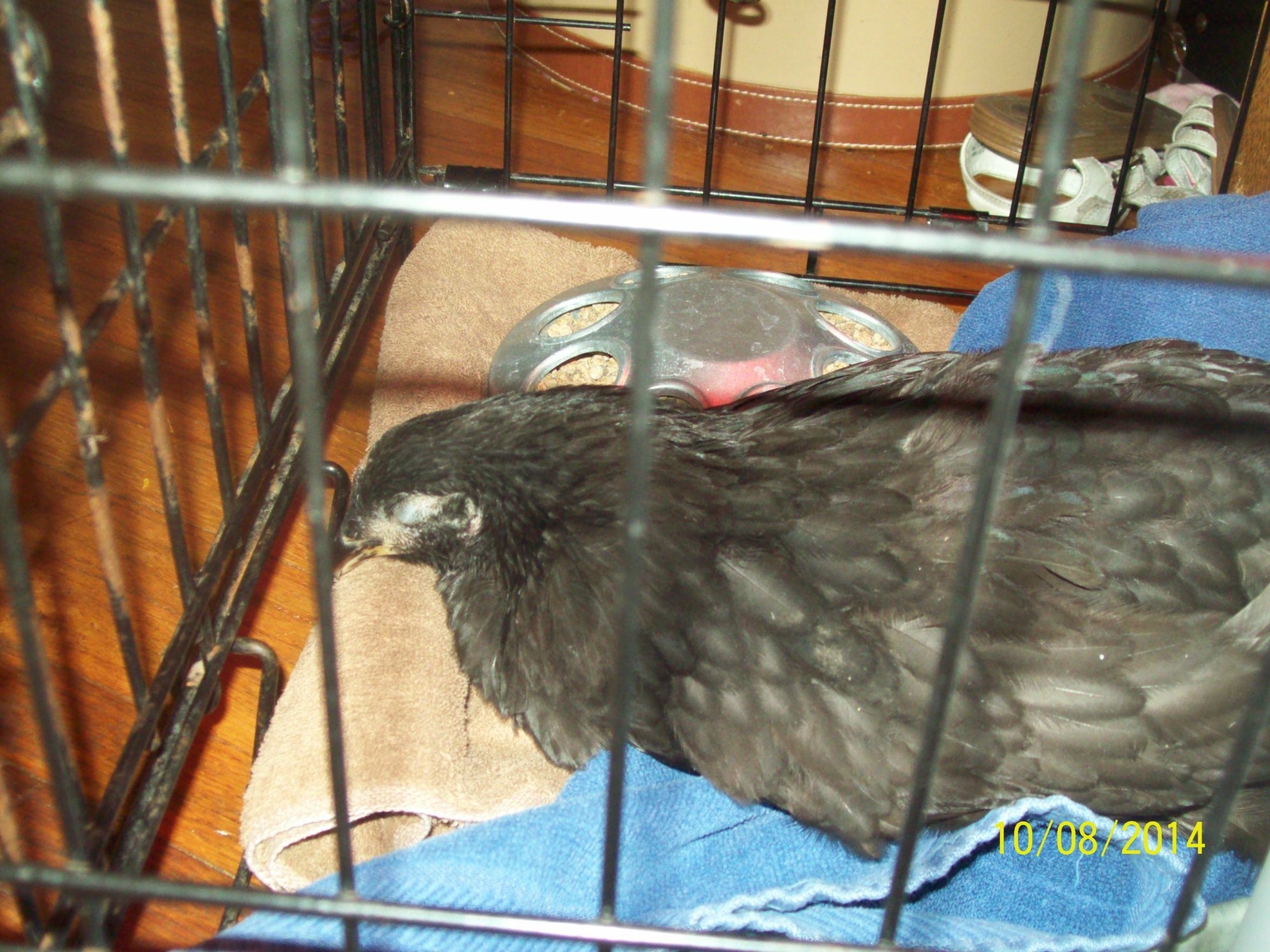 i have a 2 month old black australorp that isn't acting right, i went out yesterday and she ran up and greeted me like usual and she ate and drank but then she went off in the corner and laid down and doesn't mind being picked up which is odd for her. and today she wont eat but she will drink, i brought her inside and put a heat lamp on her. she is pretty much just wanting to sleep, she gets up every little bit and drinks and chirps but wont eat. i am not sure but it looks like her nostrils might be a little swollen the openings don't seem to be very wide and im pretty sure they haven't always looked like that but again im not sure. here are a few pictures i took, i tried to get one of her nostril but its not very good