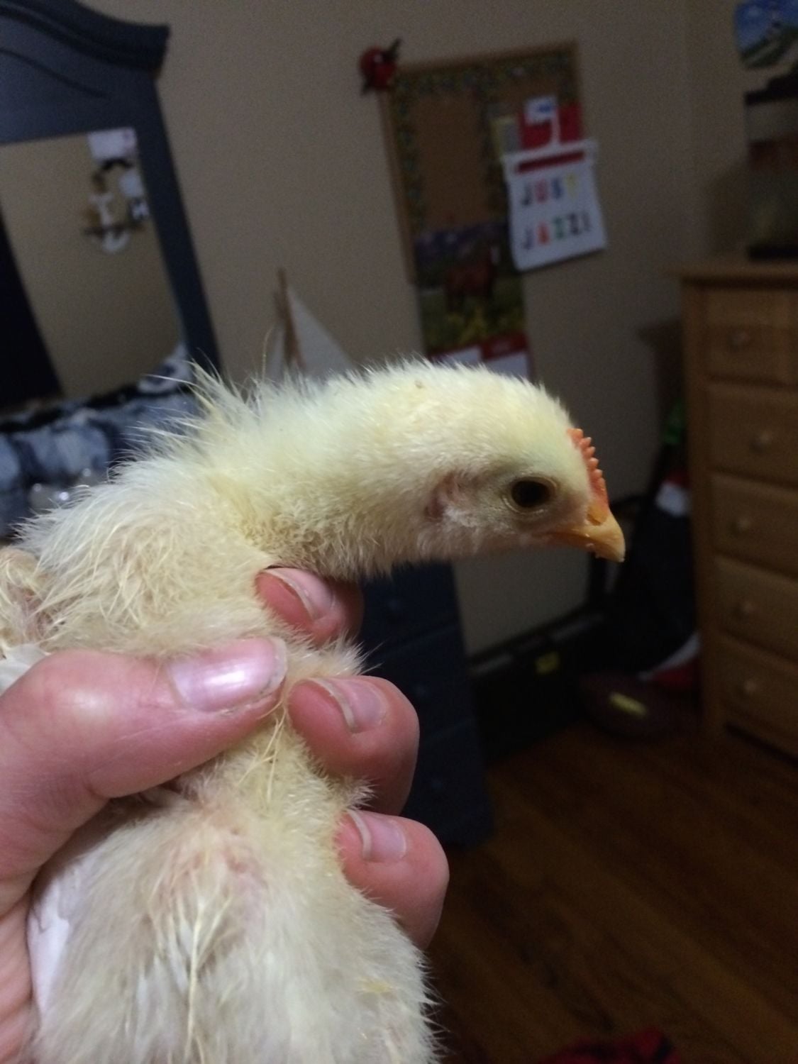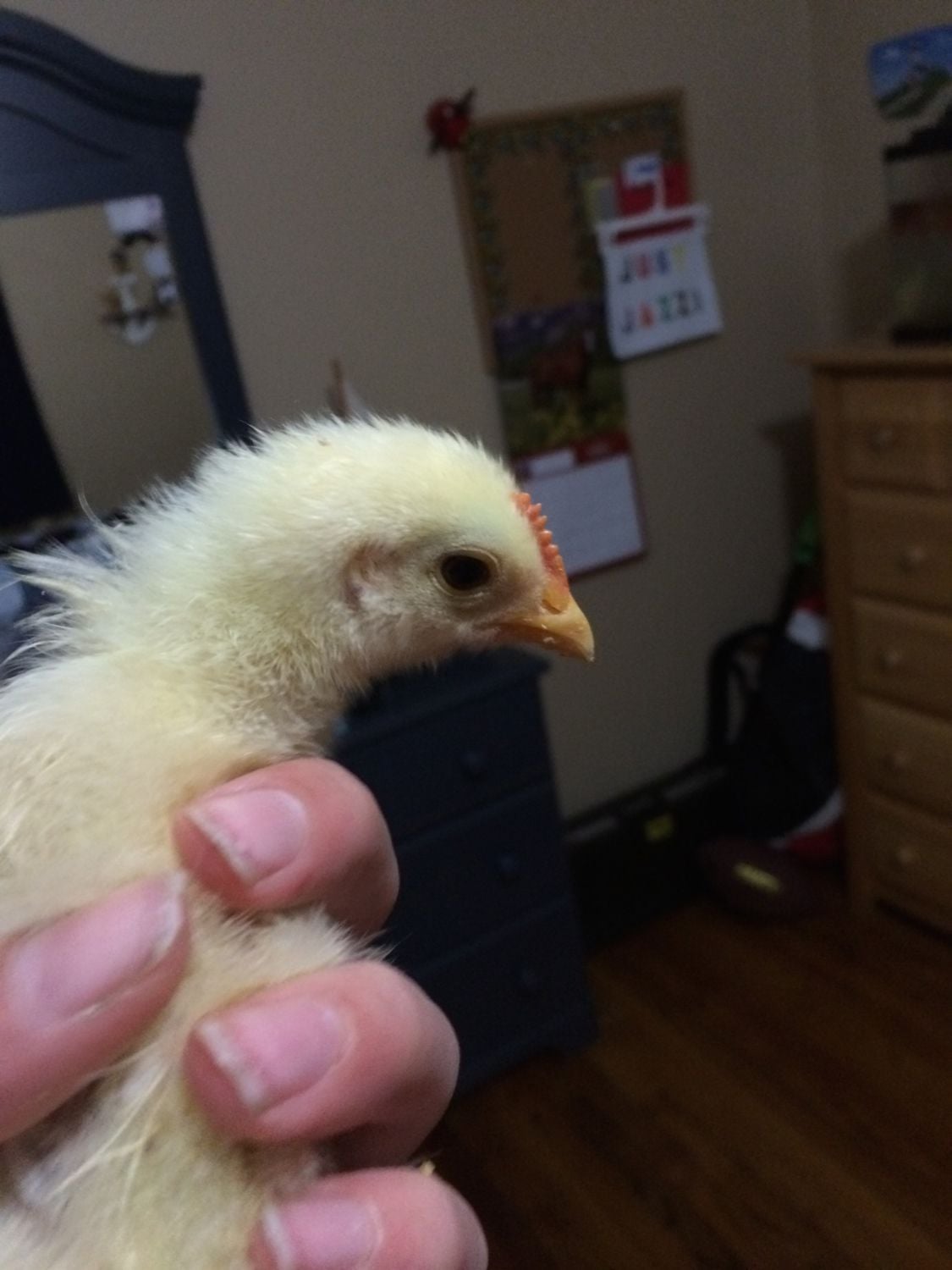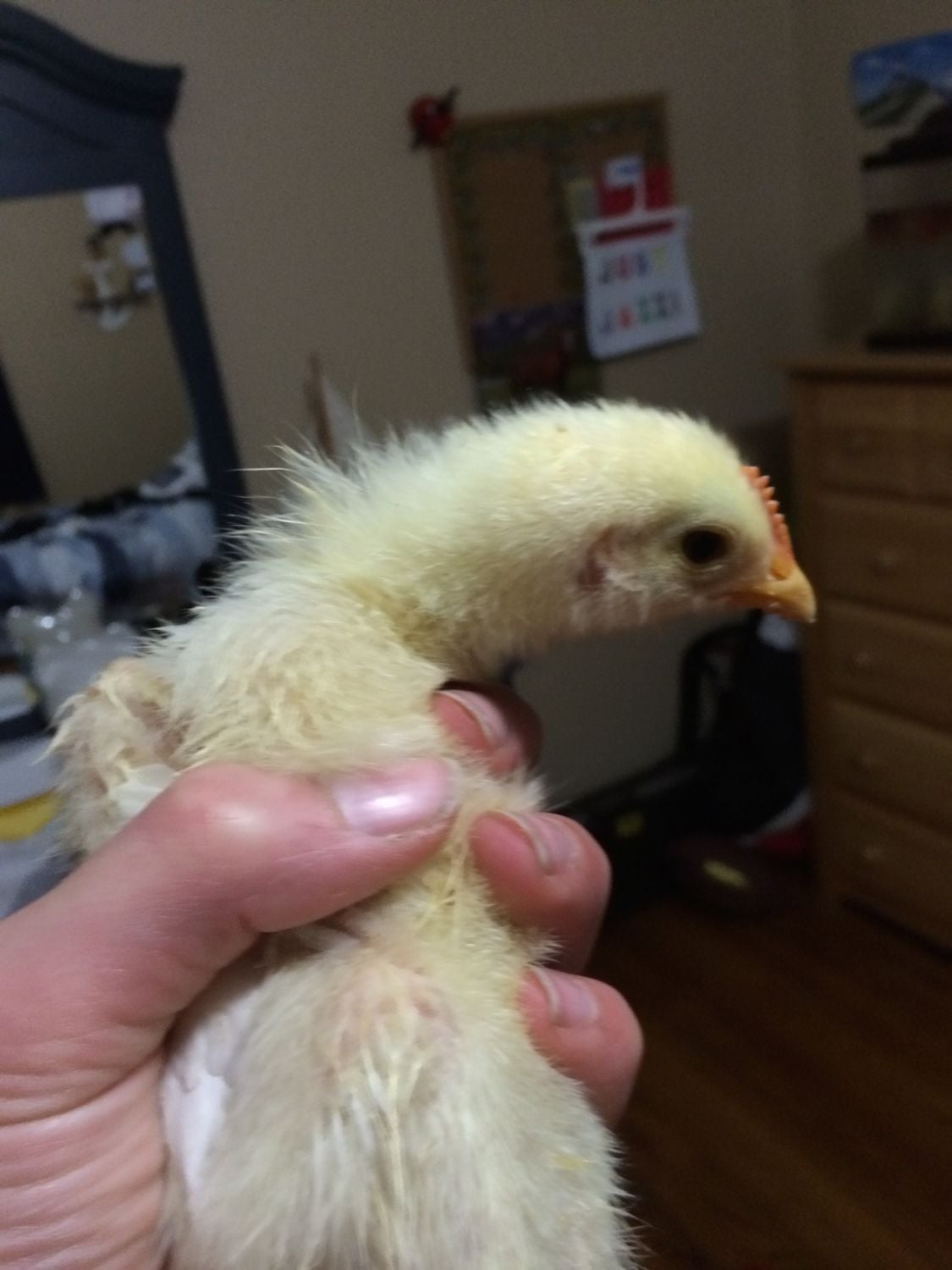 My chickens are currently 3 weeks old today. I noticed one of them is developing slower than the others. He/she is not growing as fast as the others and is not developing many feathers. He has a humungous comb on the top of his head. They were all supposed to be pullets but I am doubting this one.