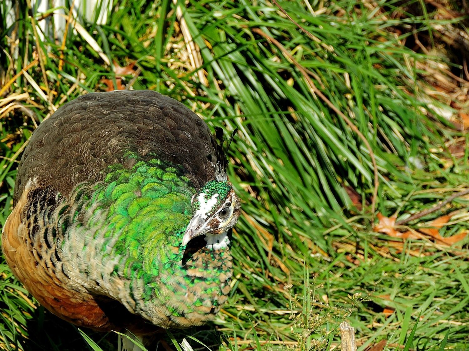 That's interesting, is your hen split for another color? Her color looks different. I just found a wing band on her wing, with code GCC, now i need to find which farm code is this. I also find a wing band on the silver pied male split peach, he is from, DMfarm, If anyone knows Doug email from DMfarm please let me know, i want to ask him about this male.My understanding is an IB will have cream colored feathers there, but if they have some green blood they can have the orange looking feathers instead, so I was thinking maybe she is a very low % spalding. My spalding has very orange feathers there and if I kept breeding her offspring back to silver pied males eventually I would have a SP hen that might have that orange color from the green blood.