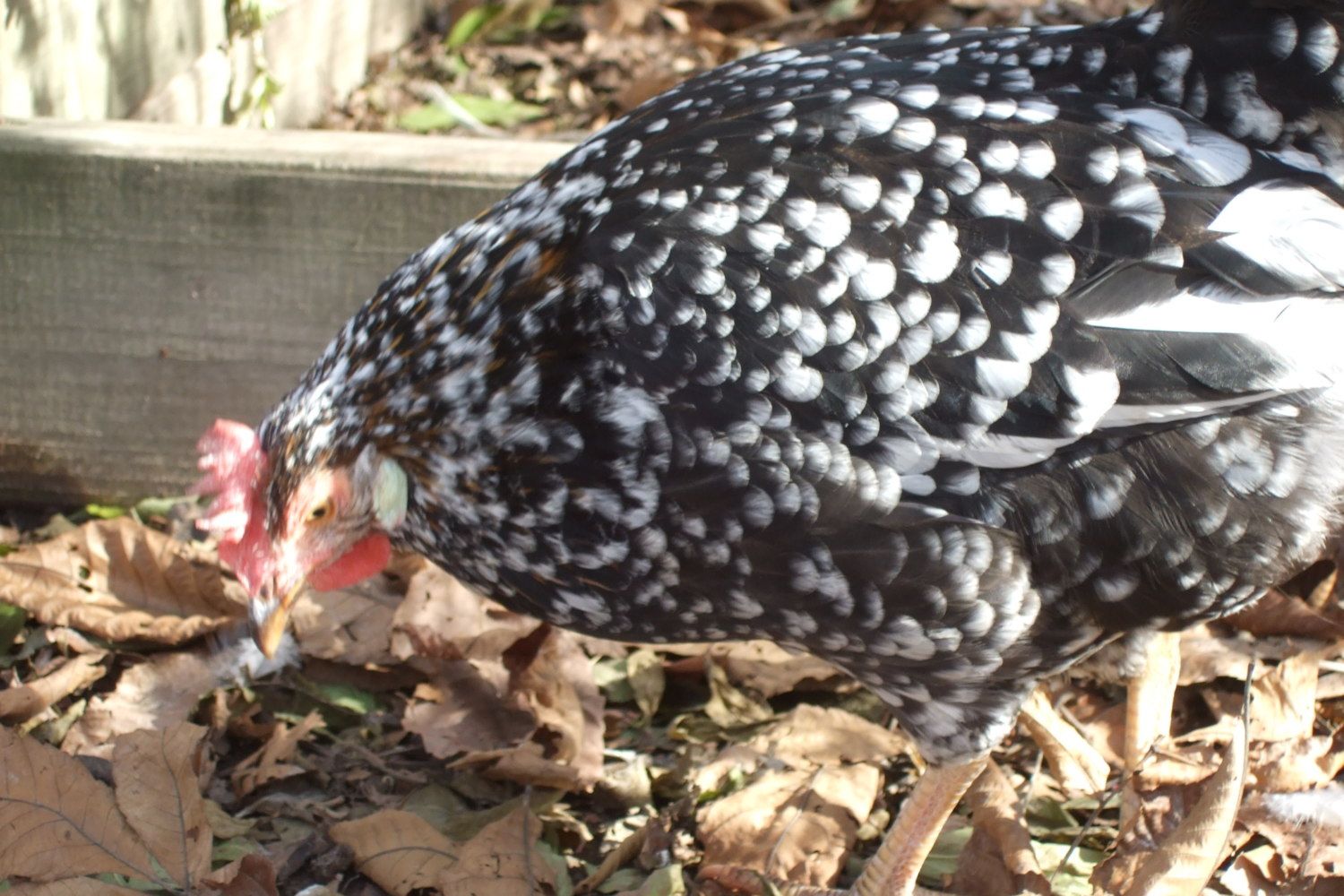 Notice how little mottling Anna had just this past year........then she brooded two groups of chicks and now, after her molt.....