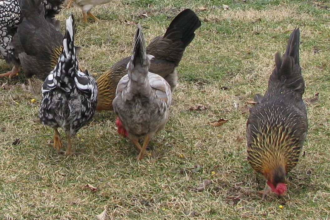 It dawned on me that I didn't post a Kella pic of the week this week, so......I went to find something because I haven't taken new pictures this week. I decided on this one, mostly because I thought it was such a cool pic of Anna's tush. Her contrasting black and white motttling makes for an interesting design don't you think? Also, the shape of the two of them is so close....almost as if they were the same hen but with different colors..........almost like a standard size and shape...........