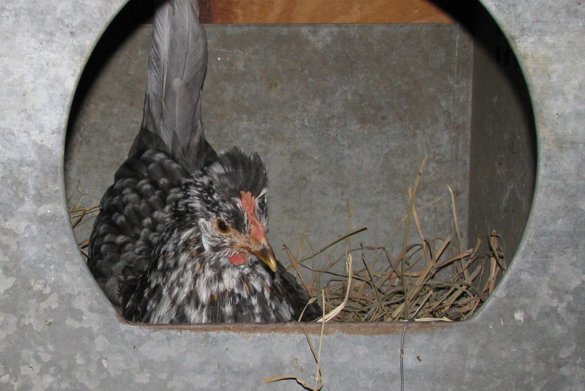 What does she thinks she's up to?! She'll be 5 months old on the 24th!! I hope she was avoiding the cockerel since it was their morning to be inside....but her comb is getting pinker and she sure growled at me when I moved her to check for eggs!!