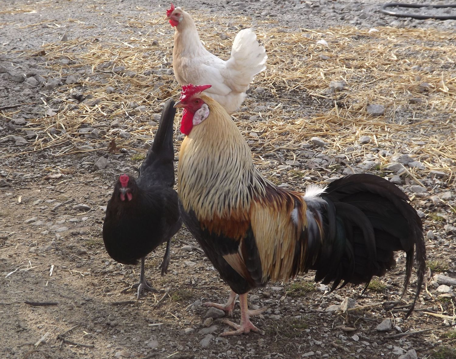 Jake, sorry about the complaint. I hate it when someone in the country complains about it. I do try to keep my rooster numbers low because when they get started on a crow-off the noise can be a bit much. The only complaint I have had is from my own husband! Today I am re-homing and Icelandic with very bad mating manners. He and a look-a-like twin gang up on the hens together and they are brutal. I kept the least offensive of the two but will be watching for an improvement in his behavior. With the evil twin locked in my garage, this morning I saw him clucking at a hen to show her some scratch. I hope he remains a keeper because that gives me three roos to 21 hens and all are distinctly different in color and pattern.