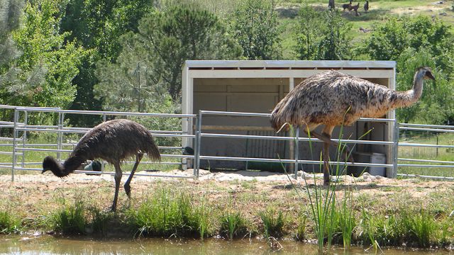 We decided that if I am going to be able to rebuild my Icelandic flock and raise my turkeys we needed to move the emus to the pasture with the donkeys. This arrangement has its own frightening consequences but we have to try something. So we moved the emus over there with the donkeys and watched them carefully and nothing bad happened. We are going to move the chain link pen that they sleep in behind the donkey shelter and as soon as that is done the move will be permanent. We have to put a fence across our yard because they can swim across the pond and get out. Temporarily we put up a chicken wire fence. This arrangement if it works out will be better too since they won't have access to reach over the fence into the road when people pass by and try to pet them.