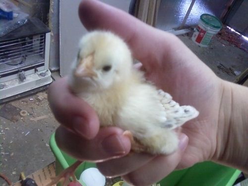 mbmess2003 hatched some from my flock for the NYD hatchalong. Forsaela, the black pullet I got from kathyinmo, was in the breeding pen. I thought he might get a black chick but he did not. syount is CA is hatching some now from the same pen (shipped a few days after mbmess'). I am looking forward to seeing what he got.