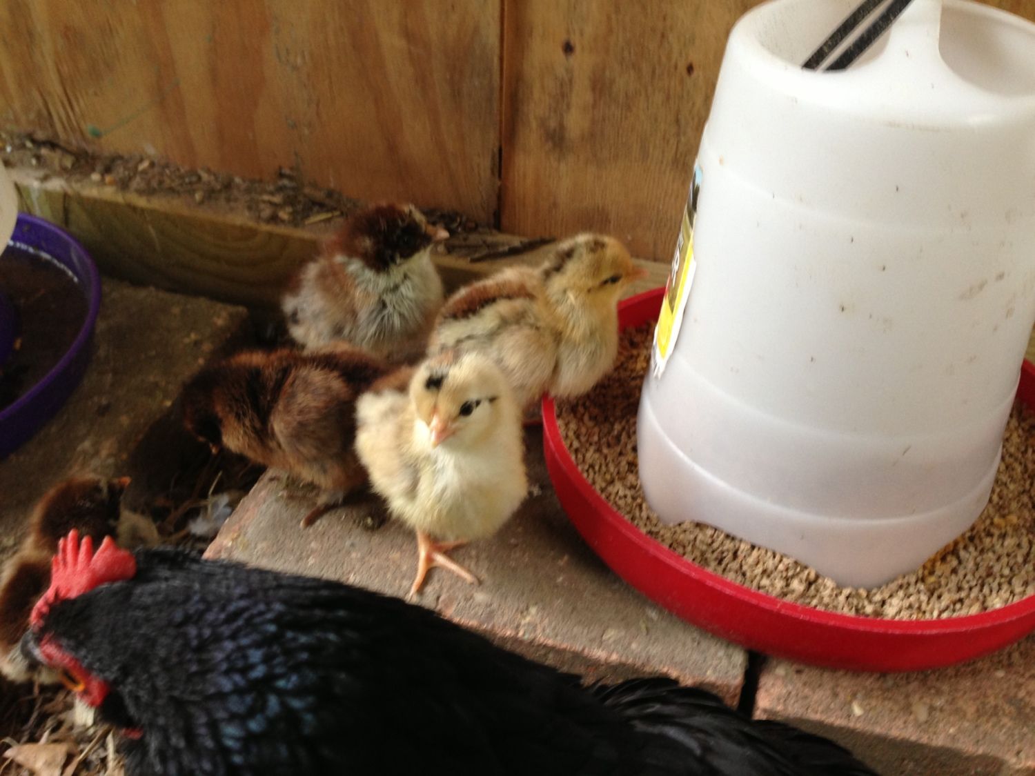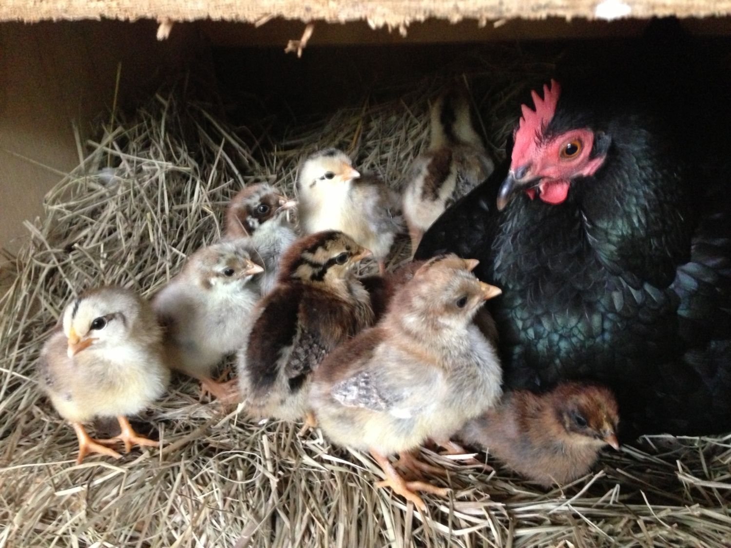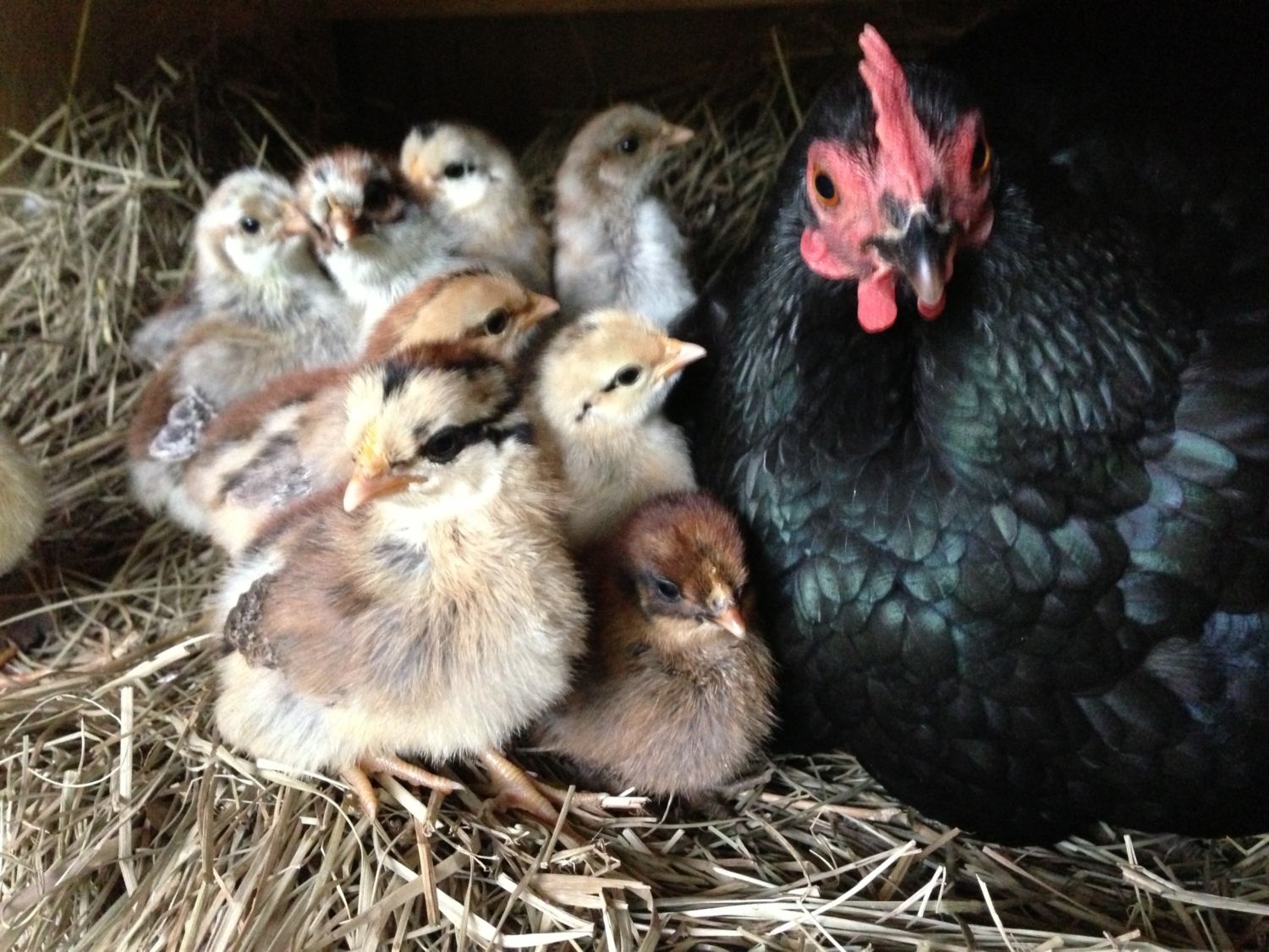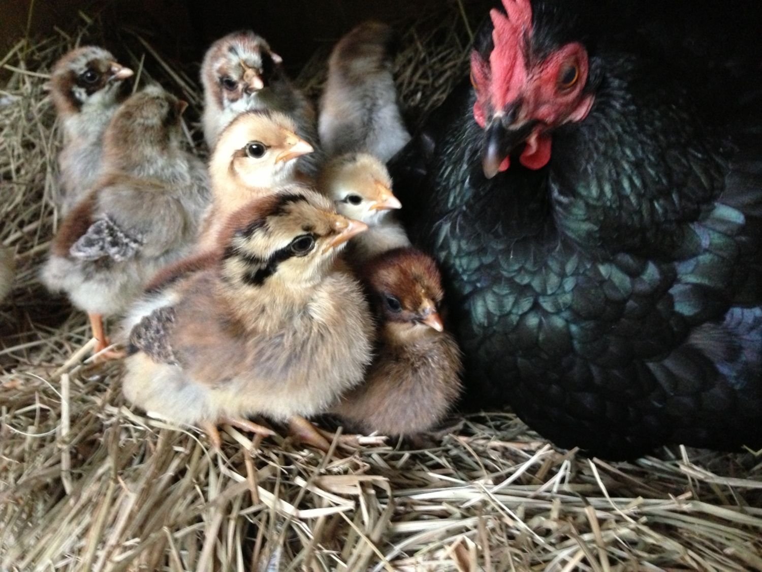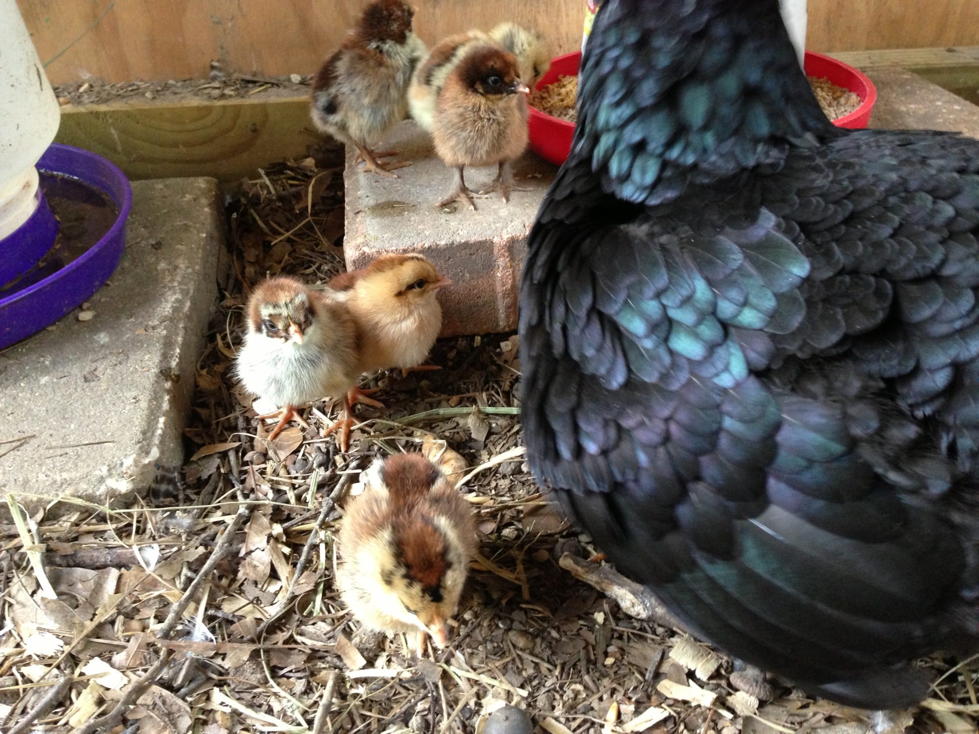So sweet! Is that a Bantam broody??? I like the little brown one next to mama in the front.