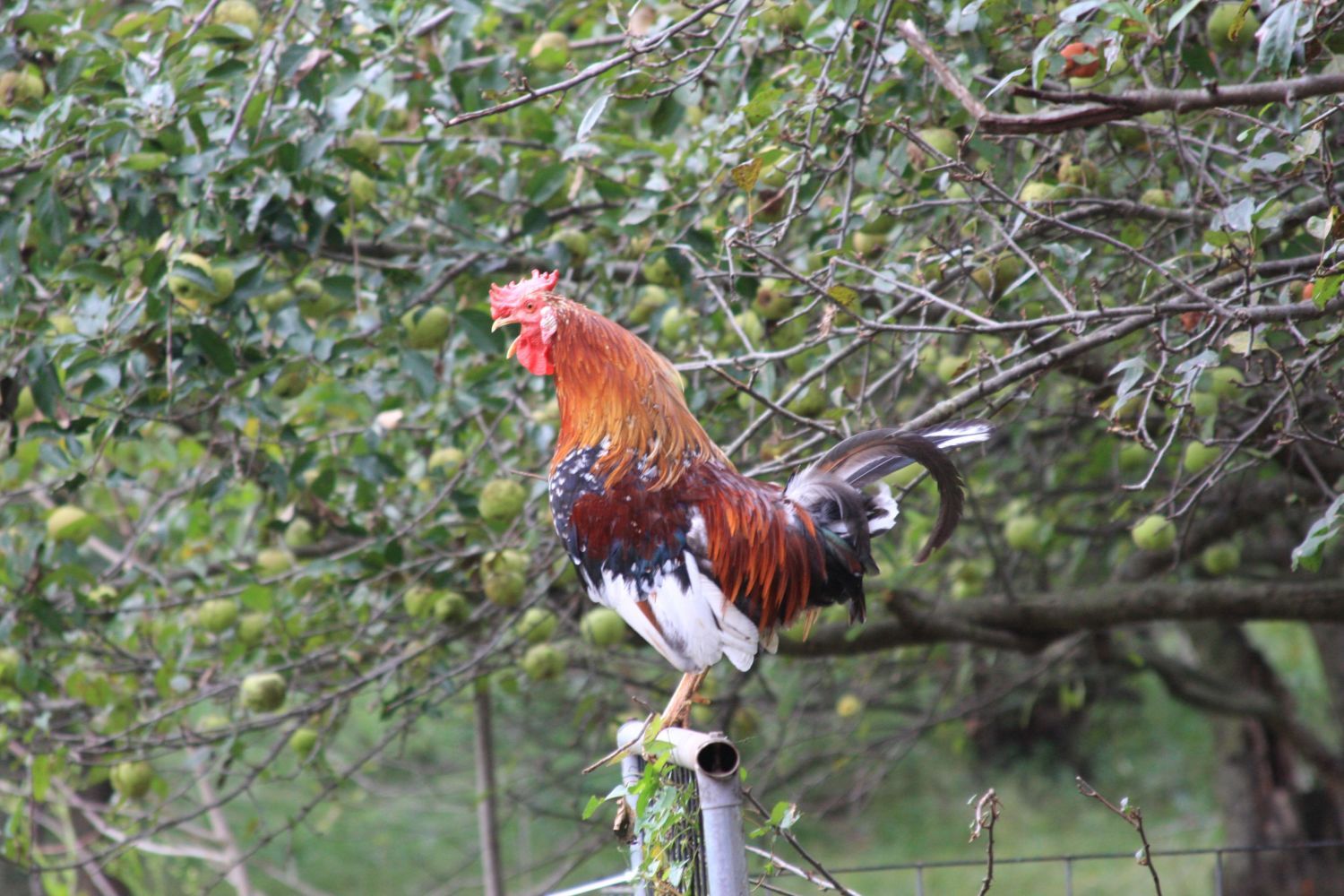 Thanks. He's a pretty good and active rooster. I'm glad I kept him. He flies in and out of the run all day. Checks on the 3 girls still living in the goat barn. Spends time with the 7 chicks that the mother hen left on there own. He basically tends to 3 different flocks.