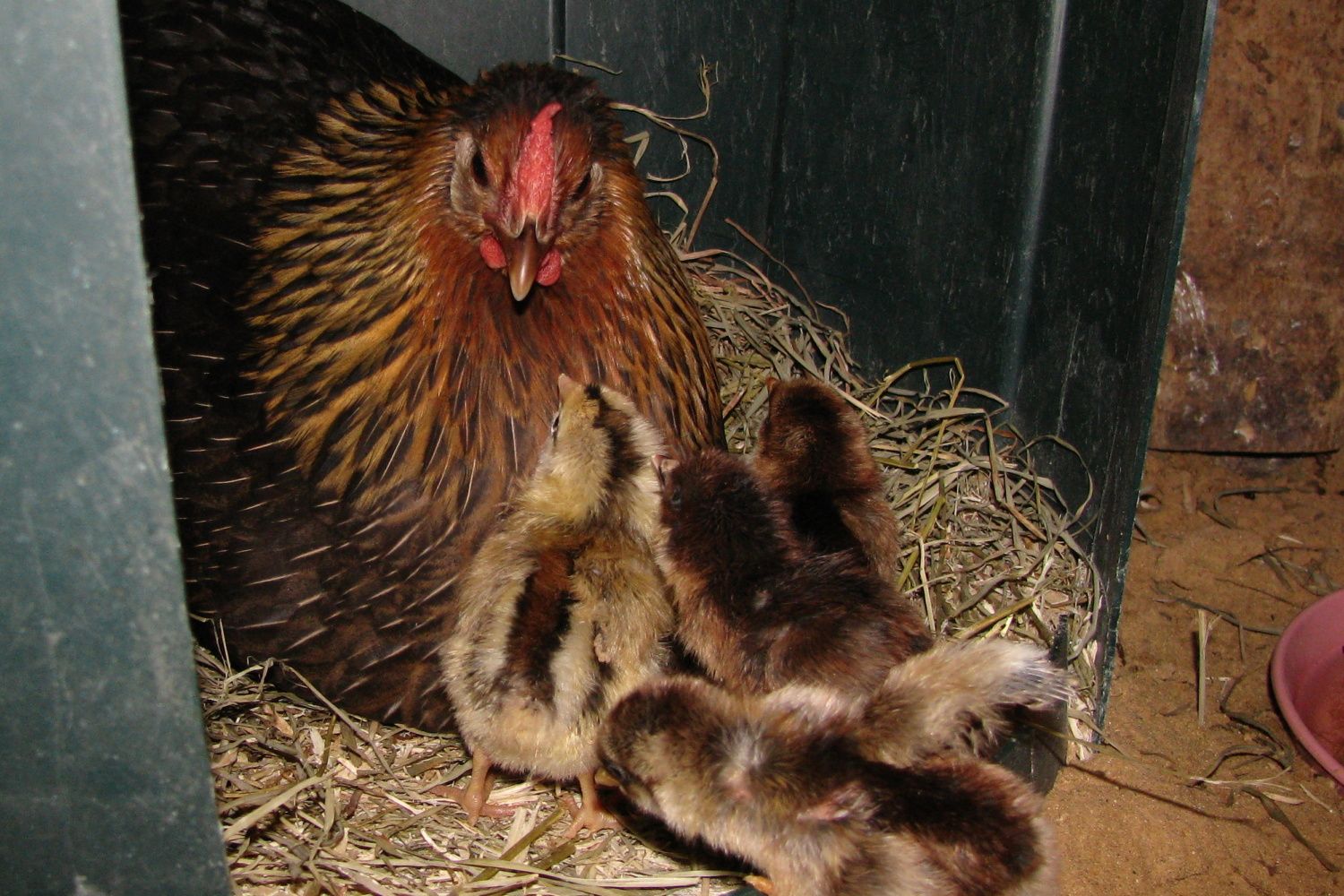 Oh, that chick is precious!!! Okay, I just set up my nest box situation like yours, Mary. Hopefully that will encourage my girls! I will keep you posted. Thanks for the idea!!
