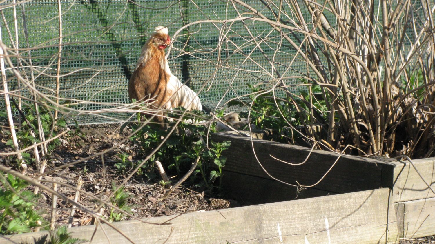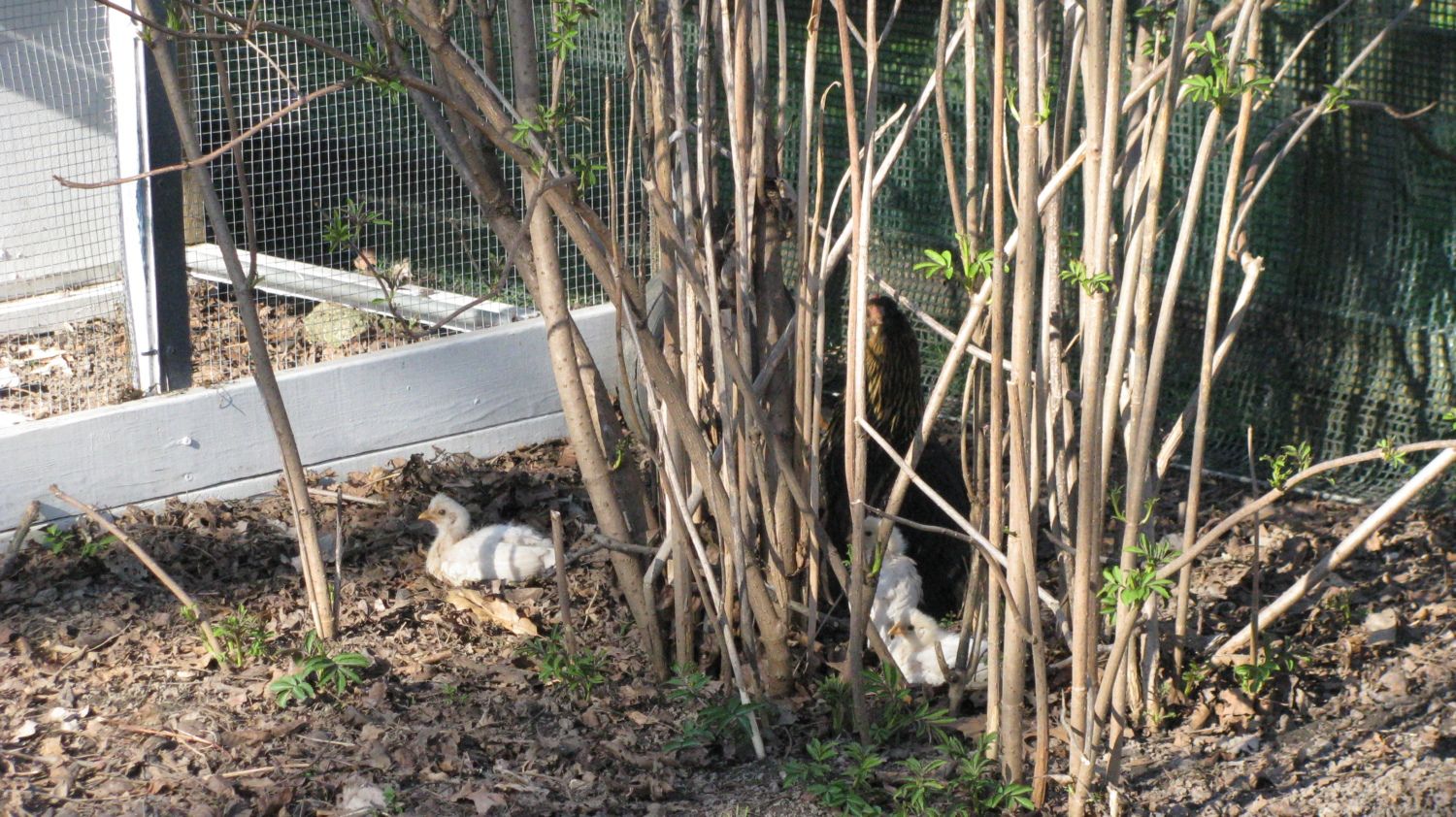 .....and now here is Heppni teaching her chicks to hide in an elderberry bush...