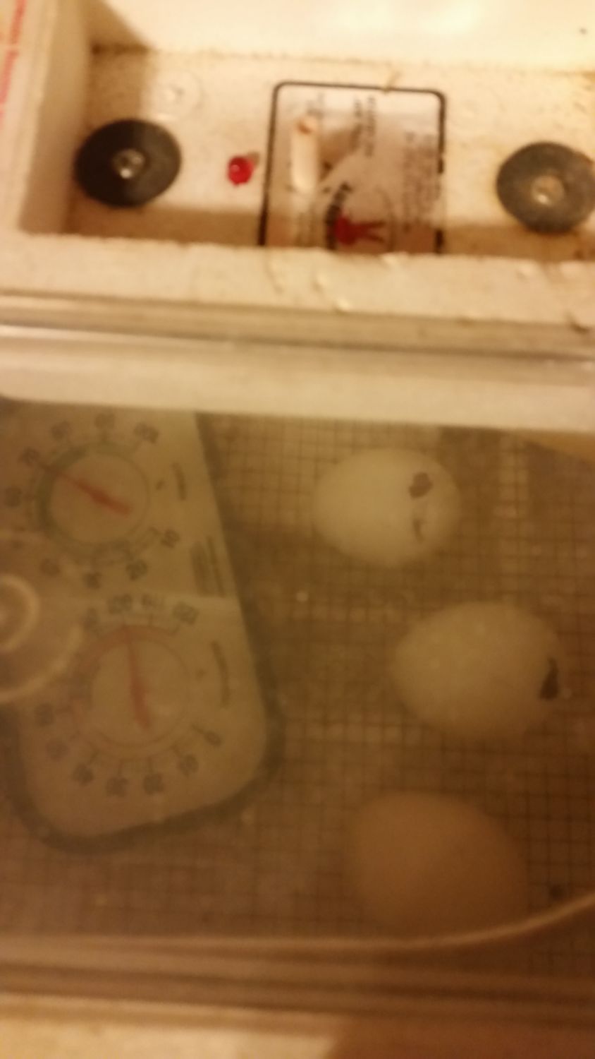 Since then, I broke many "rules" listed in the egg-hatching tutorials on this site. Did not wait a full day before putting them in the 'bator. Did not allow the 'bator a day to "stabilize," whatever that means. Adjusted the temperature dial whenever I thought it was too hot or too cold. Did not rigidly control humidity - just put a little water in the bottom trays when it looked like it needed it. I DID turn them 3 times a day for the first two weeks, BUT on Day 14, I left home on a day trip and they didn't get turned for about 21 hours. On Day 17 I took my daughter on a camping trip, and the eggs got no attention for more than 24 hours.