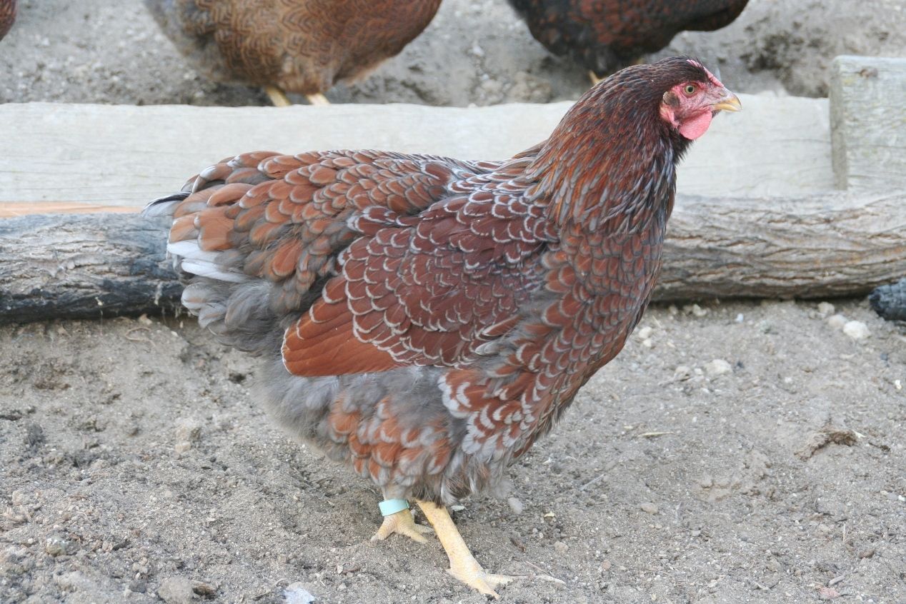 I have a blue orp from Azriel that I got at the chickenstock in May... I think she is a really pretty bird, she's getting really big and fluffy, but she has some gold looking leakage on her neck, just a small spot, not all over her whole neck... How does that happen?? Because aren't they bred by crossing black and splash orpingtons??