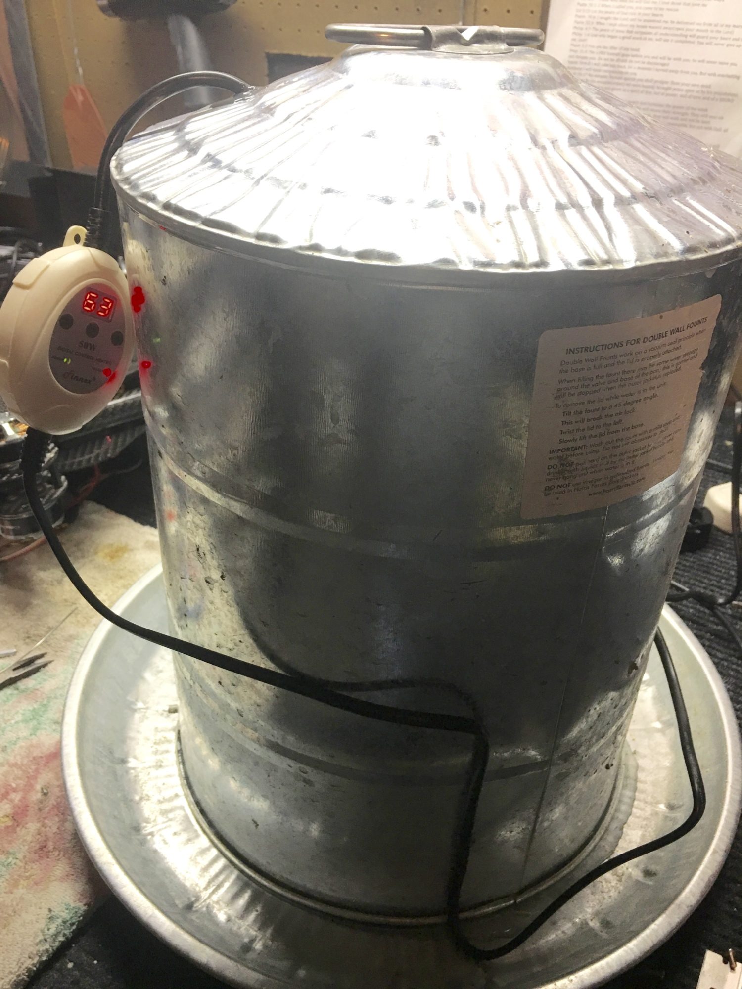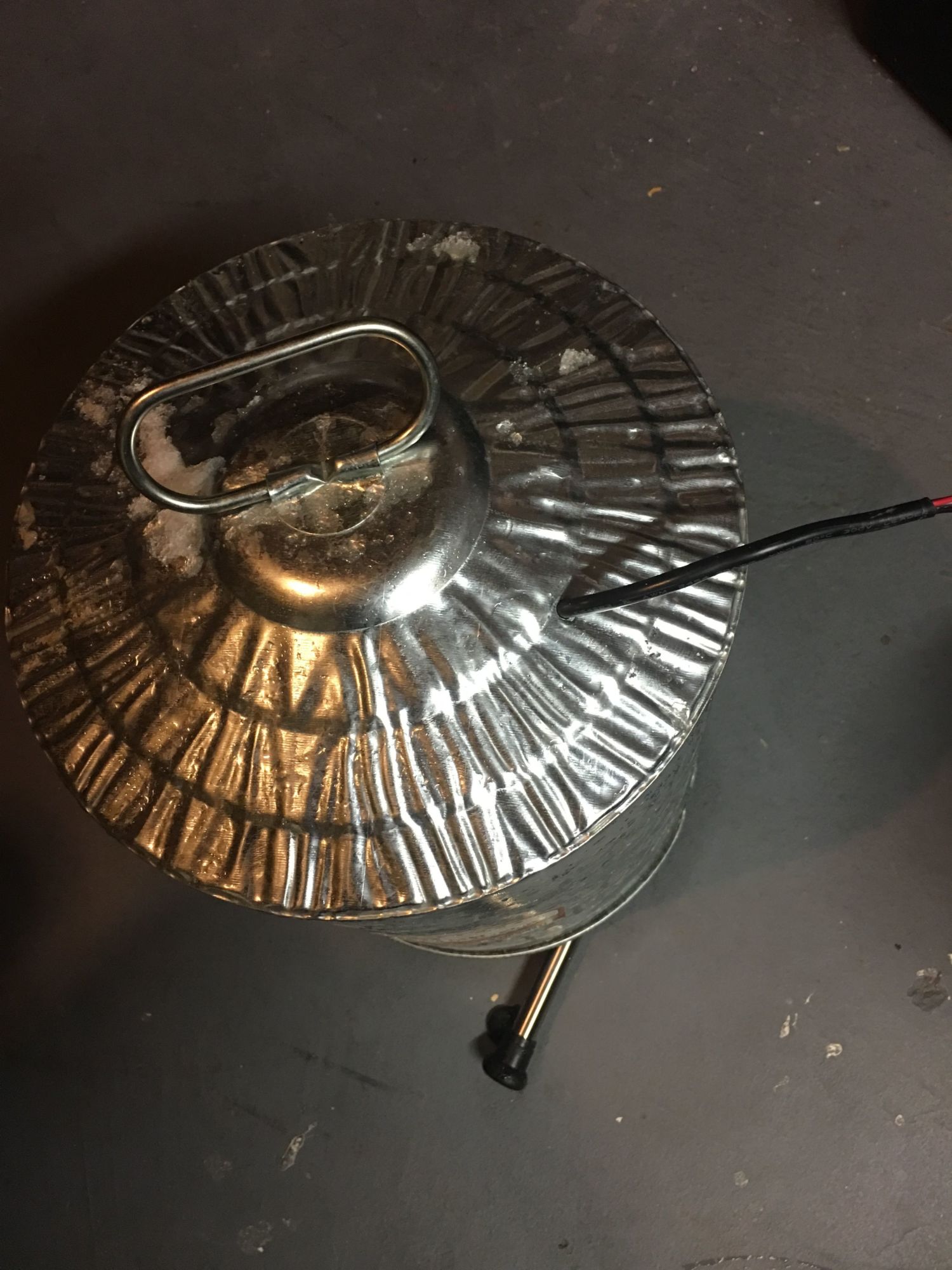 First step was to unscrew the control unit of the drop heater, remove the power wires with a soldering gun, drill a hole on the top of the can (3/8 I believe) and then run the wires through and resolder. Once that is done, screw the main unit back together and silicone the hole where the wire runs through the can. Most of these cans use pressure to keep the water in, so making sure the hole is plugged is important.