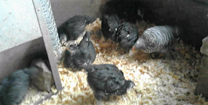 We've raised australorps for years and have often hatched our own. This year we decided we wanted to bring in some fresh bloodlines & we ordered 20 black australorp chicks (15 pullets & 5 cockerels) We chose a hatch date of Feb 27th and 23 chicks arrived at the post office on Feb 28th (they sent us a few extras). 21 of them are still alive, but they aren't feathering out like I expected them too. Some of the chicks had a spot on their head, and sure enough we have 5 that feathered out looking like barred rocks. Of the other 16, only 2 or 3 look like what I have come to expect of black australorp chicks. The rest of them have me scratching my head a little. From above & behind they look solid black. However, looking at them from the front or side they have speckles or spots on their chests and front part of their wings. In all my years of raising australorps, I don't recall having ever seen one look quite like these.