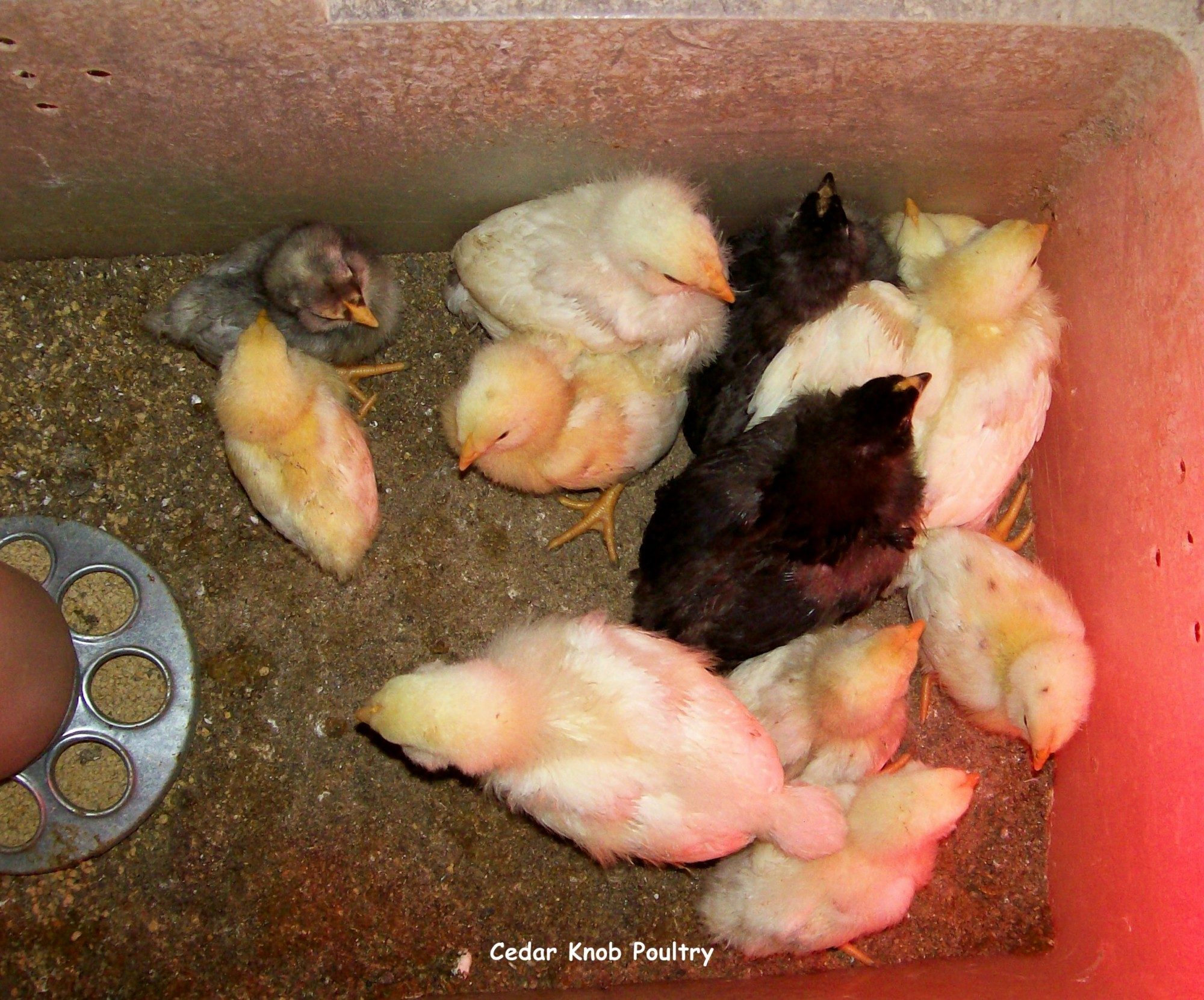 I always get a kick out of hatching chicks, though not so fond of raising chicks in our winters here. However, I'm developing a project line of meaty bodied, blue egg layers and want them to be decent winter layers, so am hatching chicks from a breeding pen of birds that are a cross of Ameraucana and CX and use no artificial lights or heat. These will be two and three weeks old this coming weekend.