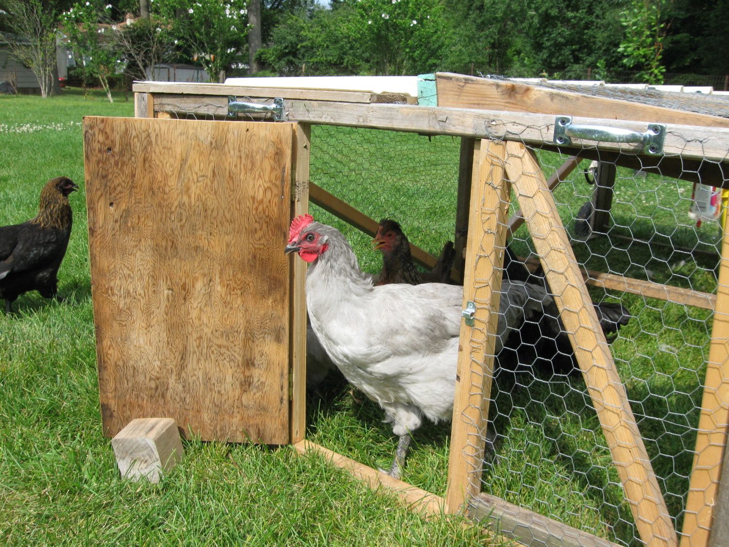 I'm new to the site and have just purchased a chicken coop and am anxious to get started! I live near Peoria, Illinois. In particular, I'm curious about your tote with chicken wire in these pics. What's that set up for?My guess is 2 boys, but I've been wrong. Below are some pics of 2 orps from the summer. I thought "2" was a male especially when compared to its petite sister, so I sold it very cheap. Not only did it turn out to be female, but she's a better layer, friendly & just beautiful. The positive part is that this chicken ended up becoming the family's fav, very spoiled hen.![]()