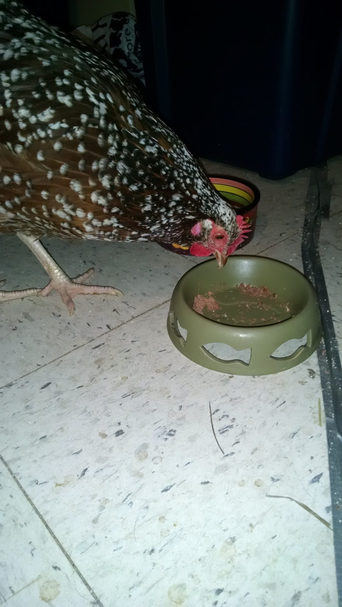She snuck under my arms while I was cleaning the cage today and made a bee line for the left over wet cat food.I think she's been planning that all day! A little extra protein couldn't hurt