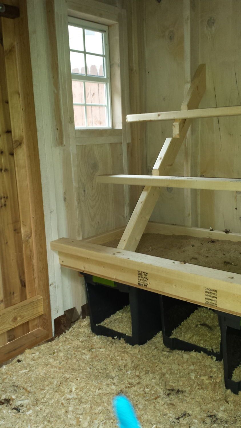 Thanks, the roost actually lifts right out for easy cleaning, except I made a mistake on the measurement for that top roost where u see that notch. You should have seen the look I got when I said, oops I screwed up. The sand poop box also comes out . Used vinyl flooring on the floor for easy cleaning in the spring, just lift out and hose down. But the kicker is that we might have found a new house with an acre of land, and I asked if there was any way we could take it apart.Nice roost design! Looks easy to clean.
