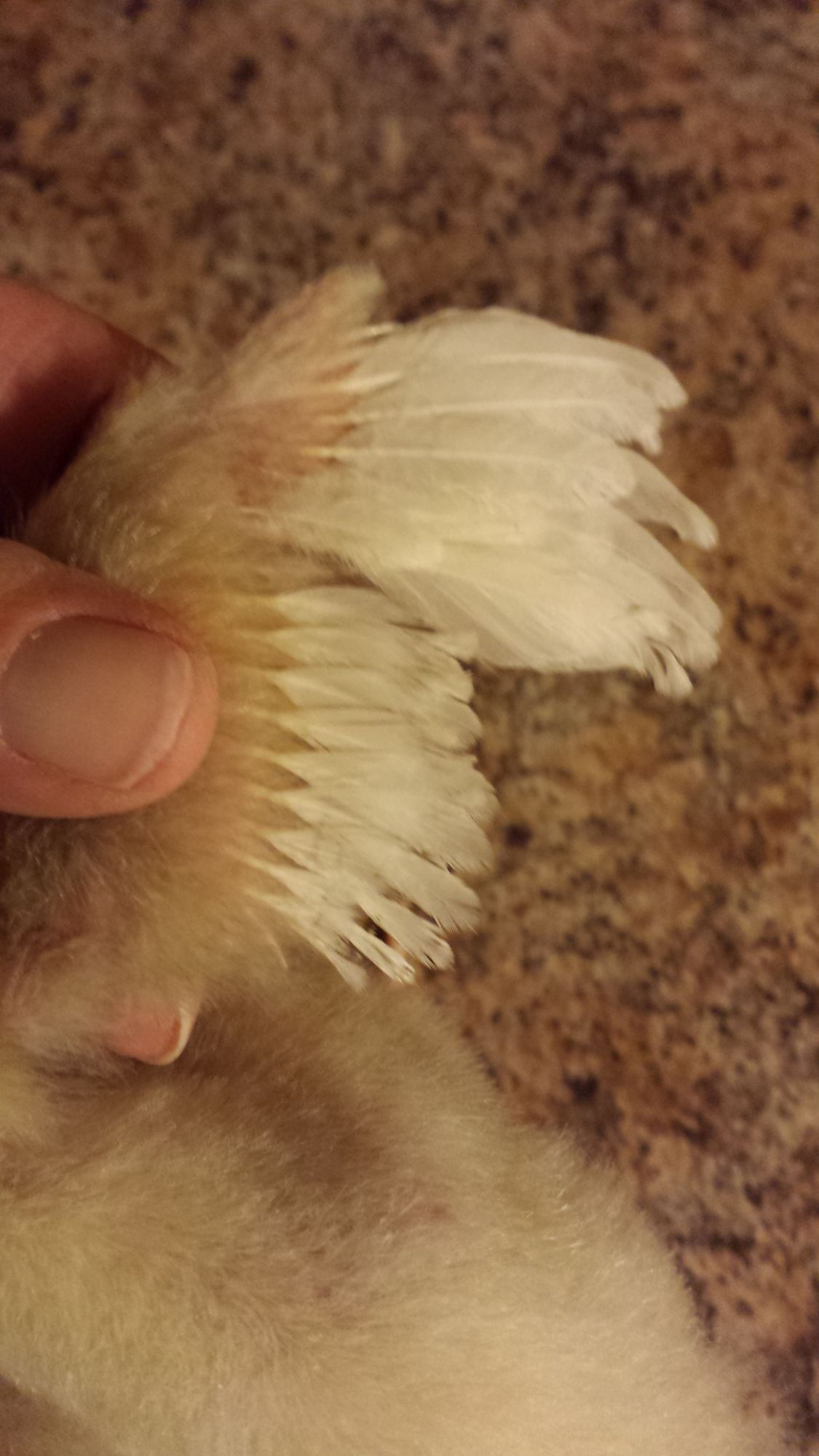 @Junibutt here is a pic of your Orpington's wing color. It really looks solid white to me, which I know it shouldn't, but it does. He has some nice thick legs! So much fun, guessing colors on all these chicks.