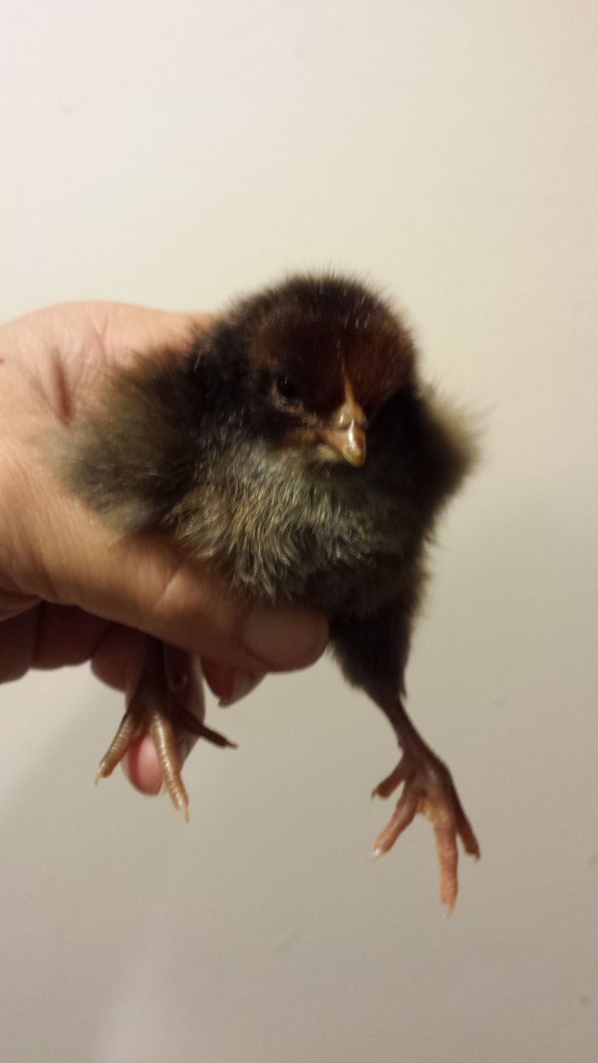 I have an orp chick hatch that looks like that. Black with brown on face. It's the sweetest in the bunch (so I'm of course thinking male). However, the color really surprised me. The egg looked just like all the other orp eggs, but I do not own any other colors than black & lav. I guess I was mistaken & put a Sussex mix egg into the incubator. Her eggs are usually a darker color brown with a slight fading effect on one end & also bigger than the orp eggs. Unless..... it did come from an orp. But how would I get any brown from black orps???? It sounds impossible to me, but I suppose there could have been ooopps from the breeder where I got my eggs - or from the source of her eggs. Any ideas? I was going to sell it as a "mix" since there's no way to know what it is.