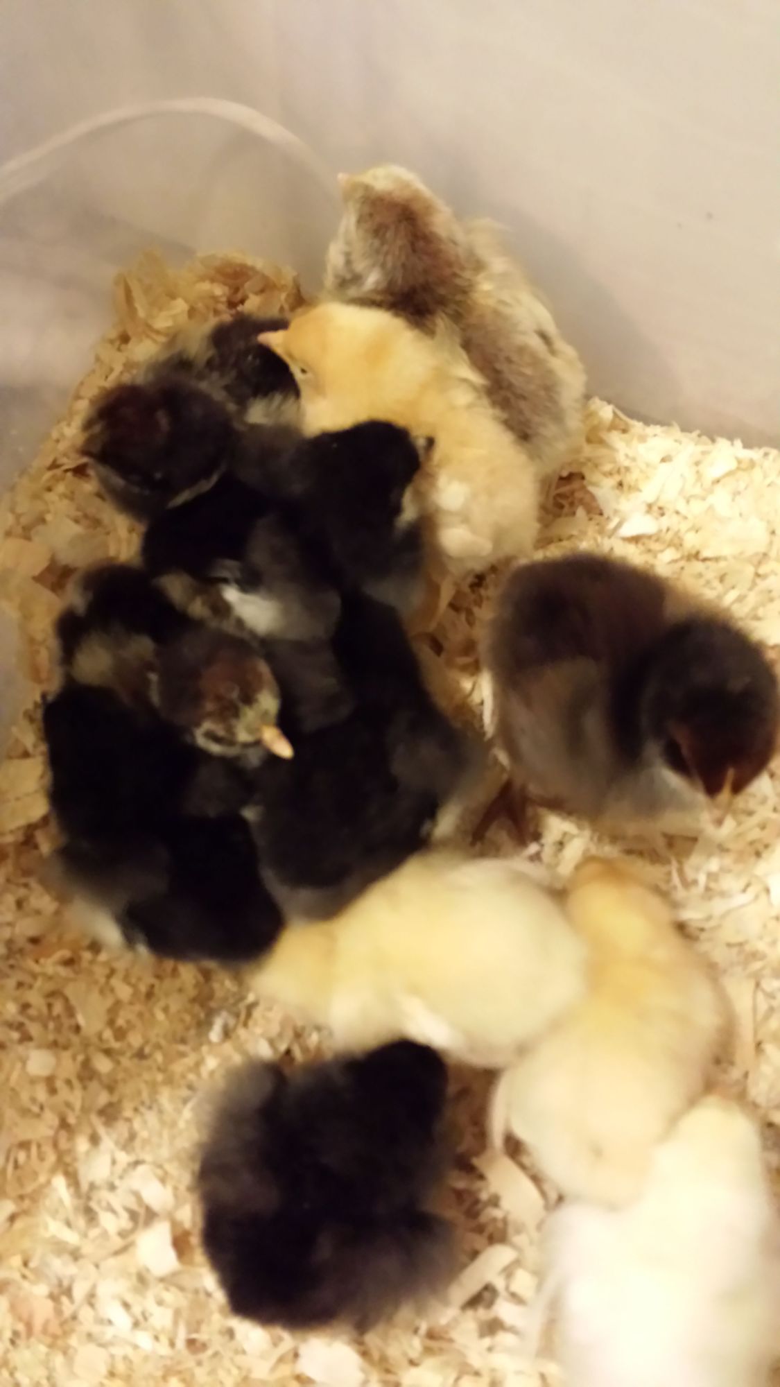 The kids are very happy to have chicks again. It's so much fun to put your arm into the brooder & within seconds it's crawling with chicks. BTW- If anyone in the Chicago area (western burbs) wants chicks, pm me for prices. I have many purebred Orps & 6 Spitz. plus 1 Easter egger, 4 Biele mixes, & 1 mutt.