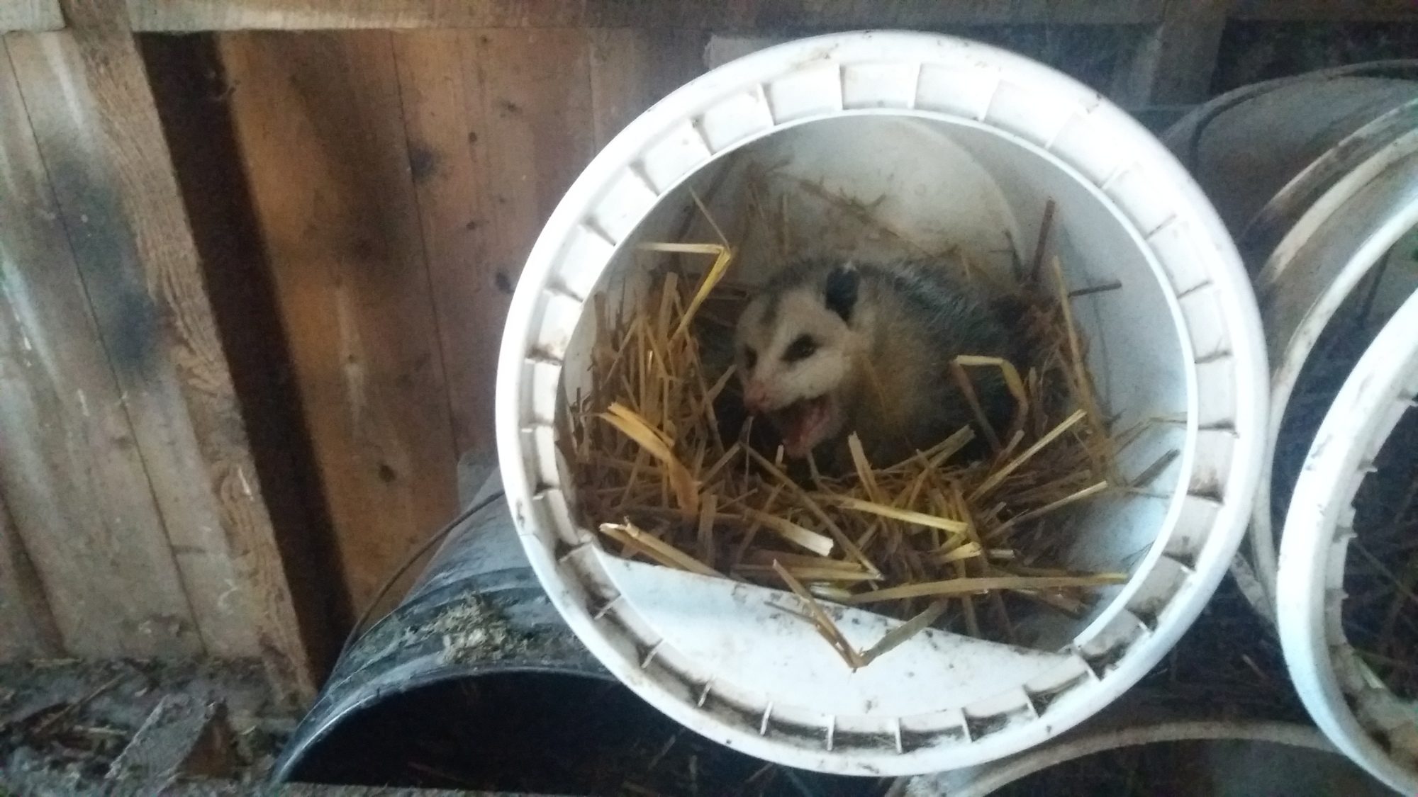 We found a possum in the cooler coop last night when we locked up the flock gorging itself on the entire day's eggs! As the flock ran up and tried to grab bites of eggs. Thankfully while it was hissing it wasn't terribly aggressive and it didn't go after the birds. We did put it down. I don't like it but we had seen it the day before and we now believe it is what has been teaching the flock to eat eggs and possibly why our egg numbers have been fluctuating so much. Hopefully they stop now that it's gone or we're going to have to try something else. I'm worried it may have turned our flock into egg eaters.