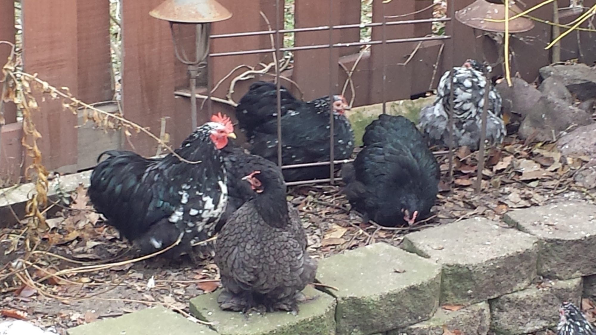 But I do believe I am going to set up another pen this spring, and I am going to separate the blues and blacks. I have 3 mottled blue and 2 solid pullets and 1 handsome blue mottled cockerel. I am so in love with my black smooth mottled boys, wish I had more room. At first, I was just going to set up another pen and have frizzled girls and my handsome smooth boy, but since I ended up with a enough blues, I think I am going to do that instead. Anyone interested in a cute frizzled girl and handsome smooth cockerel, the older girls comb has turned nice and red and should begin laying soon enough.