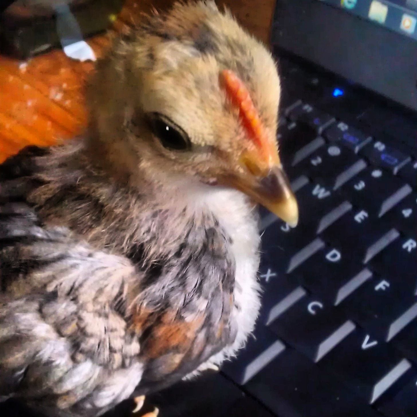 So this is Choco... my youngest son's Bantam from the Bantam bin. Have no clue on the breed but I'm thinking at about 4 weeks old this little guy is, well, a GUY