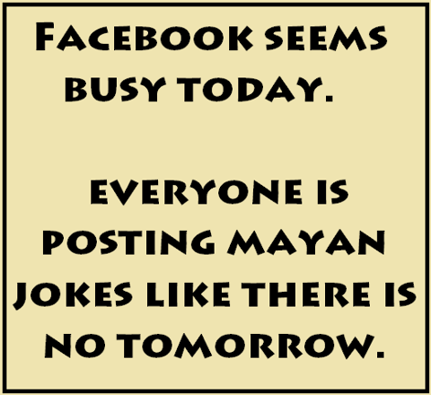 I keep thinking - all these comments about how it's already tomorrow in Australia. Why should that matter? The Mayans weren't all over the world. They only lived in one time zone, so that should be the only one that counts.